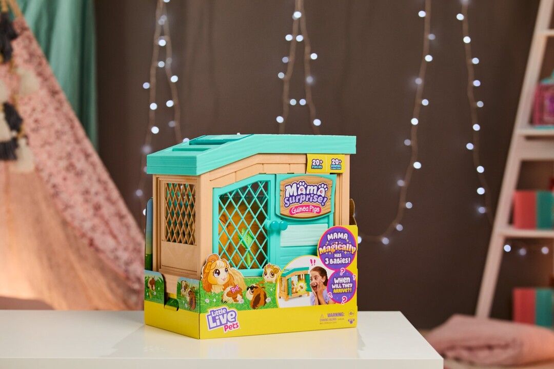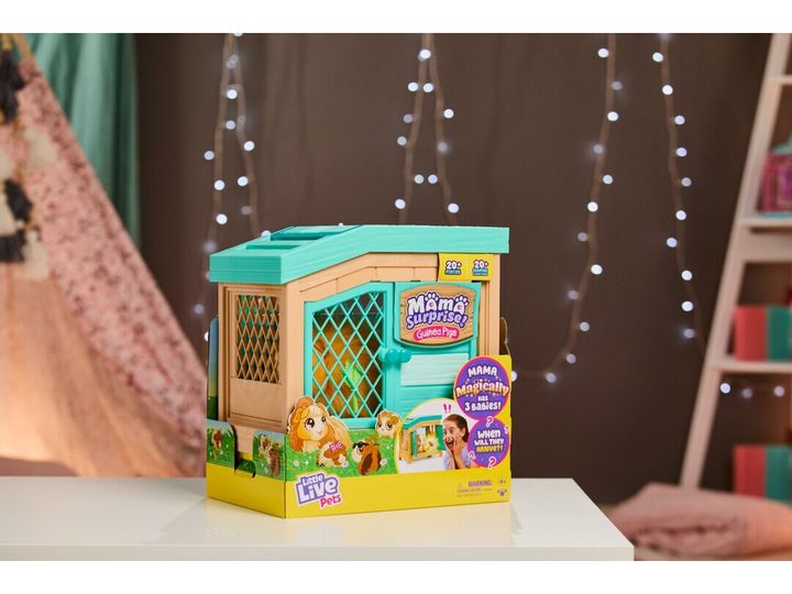 New from Little Live Pets, it's Mama Surprise! Mama Surprise takes caring for your pet to a whole new level. This soft, interactive Mama guinea pig comes with a deluxe, interactive hutch. Care for Mama and when her heart glows, a baby is on the way! Place her inside her interactive hutch and wait patiently. Discover a new-born guinea pig baby and a special care package. Care for Mama again and you will find new guinea pig babies to complete your adorable, guinea pig family! This magical experience is repeatable, so that you can go through the surprise and delight of caring for Mama and discovering her babies, again and again.