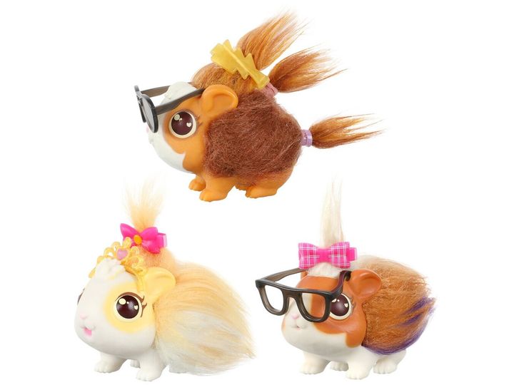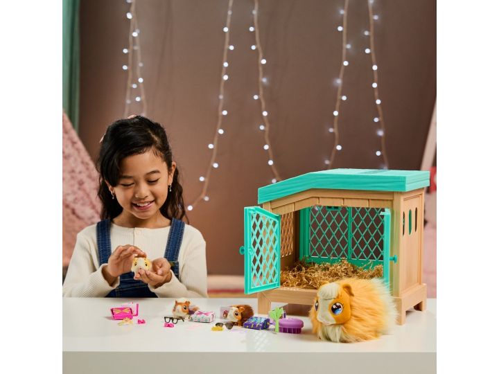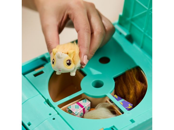 1 x Interactive Guinea Pig 1 x Hutch 1 x Hair Brush 1 x Celery 3 x Babies 3 x Care Packs (Each with 2 x Accessories, Hair Elastics, 1x Birth Certificate) 1 x Paper Nesting Material 1 x Instruction Booklet