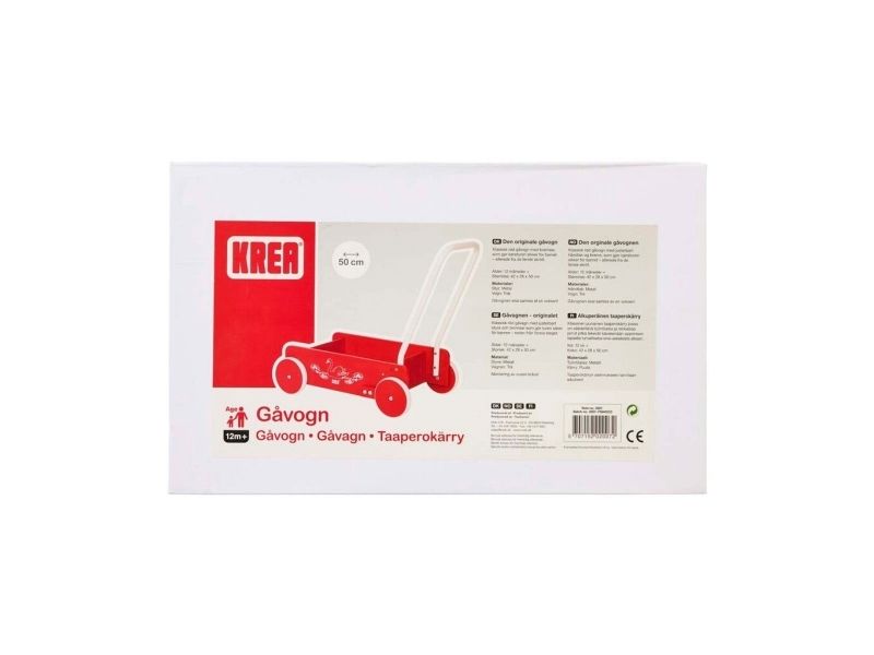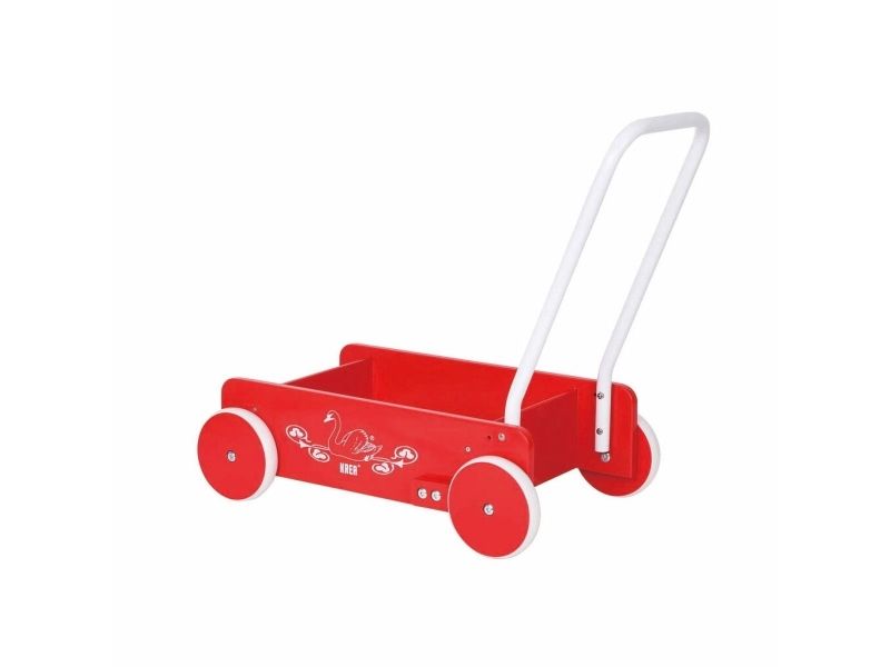Red walker with metal handle and breaks on all 4 wheels. Size: 42 x 48 x 50 cm. Break on all 4 wheels. Size: 42 x 28 x 50 cm.