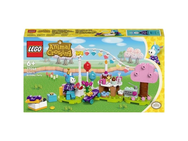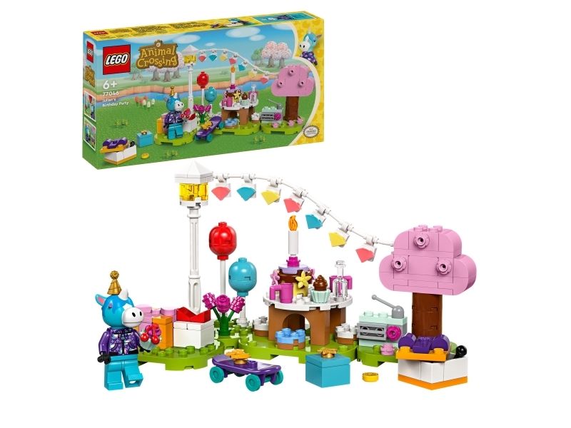 LEGO® Animal Crossing™ Jimmys Geburtstagsparty (77046) lässt kreative Kinder ab 6 Jahren unzählige Szenen aus ihrer liebsten Videospielserie nachstellen. Dieses Spielzeug zum Umgestalten beinhaltet jede Menge zauberhafte und aus der Videospielreihe vertraute Zubehörelemente, die Kinder viele spannende Geschichten darstellen lassen. Die Kinder schmeißen eine Party für das Pferd Jimmy, das Mädchen und Jungen aus der Videospielreihe kennen. Die Kinder schenken Jimmy unter anderem ein Mikrofon und eine Sterni-Münze. Während Jimmy die Kerze auf seiner Geburtstagstorte ausbläst, verteilen sie Cupcakes. Nach der Party kann dein Kind die baubare Szene umgestalten, die Bauplatten verschieben und die Ballons, Girlanden und Zubehörelemente anders verteilen. Mit diesem Set können Kinder genauso kreative Szenen gestalten wie in der Videospielreihe Animal Crossing. Diese Partykulisse aus Modulen ist ein tolles Geburtstagsgeschenk für die Fans von Jimmy. Für unbegrenzte weitere Spielmöglichkeiten muss man dieses Modell nur mit den anderen kreativen LEGO Animal Crossing Bausets kombinieren.