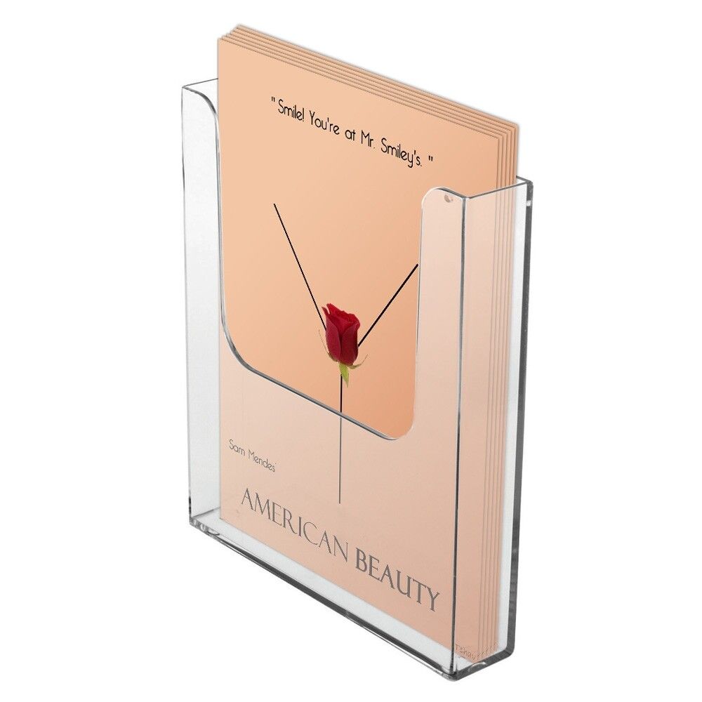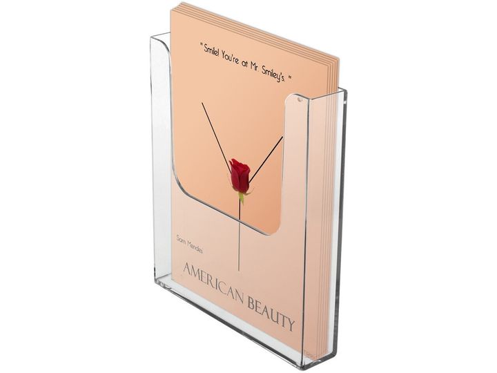 Disse meget populære og praktiske brochureholdere er produceret i 2 mm tyk glasklart akryl og kommer med 2 forborede huller til vægmontering. Det 100% gennemsigtige design gør, at hele brochuren kan ses fra alle vinkler.