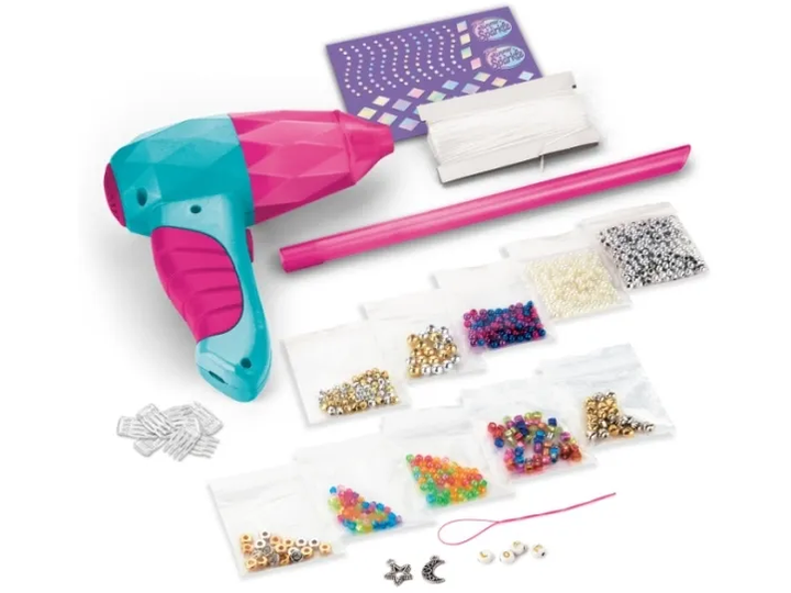 The new Shimmer 'N Sparkle Gem air styler is the perfect way to create sparkling and shimmering hair. With this innovative tool, you can easily create your own bead designs and slide them onto your hair for an instant glamorous look. It's both easy and fun!