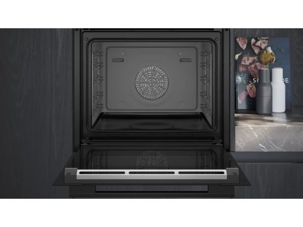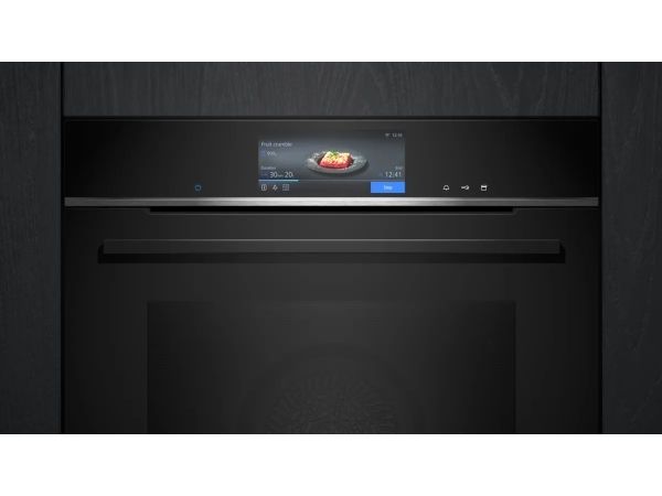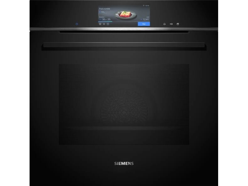 Siemens iQ700 HS758G3B1. Oven size: Medium, Total oven(s) interior capacity: 71 L, Cooking temperature range: 30 - 250 °C. Product colour: Black, Control type: Touch, Control position: Front. Energy efficiency class: A+, Energy efficiency scale: A+++ to D, Energy consumption (conventional): 0.87 kWh. Siemens technologies (cooking): 4D hotAir, Home Connect, cookControl Pro, fullSteam Plus, roastingSensor Plus. Width: 594 mm, Depth: 548 mm, Height: 595 mm