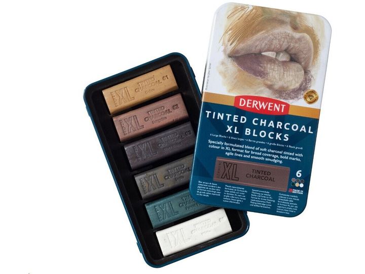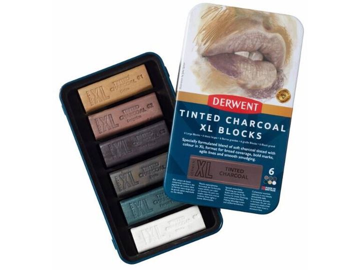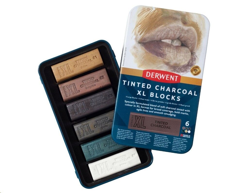 Derwent XL Tinted Charcoal Blocks 6 stk tin