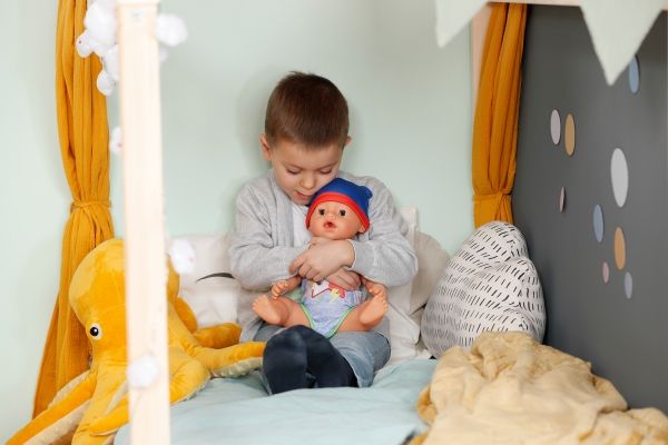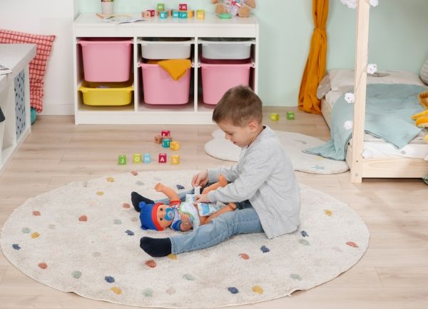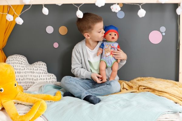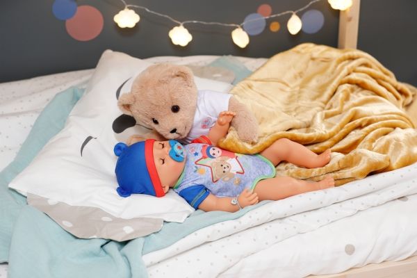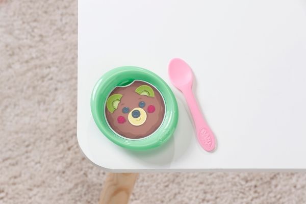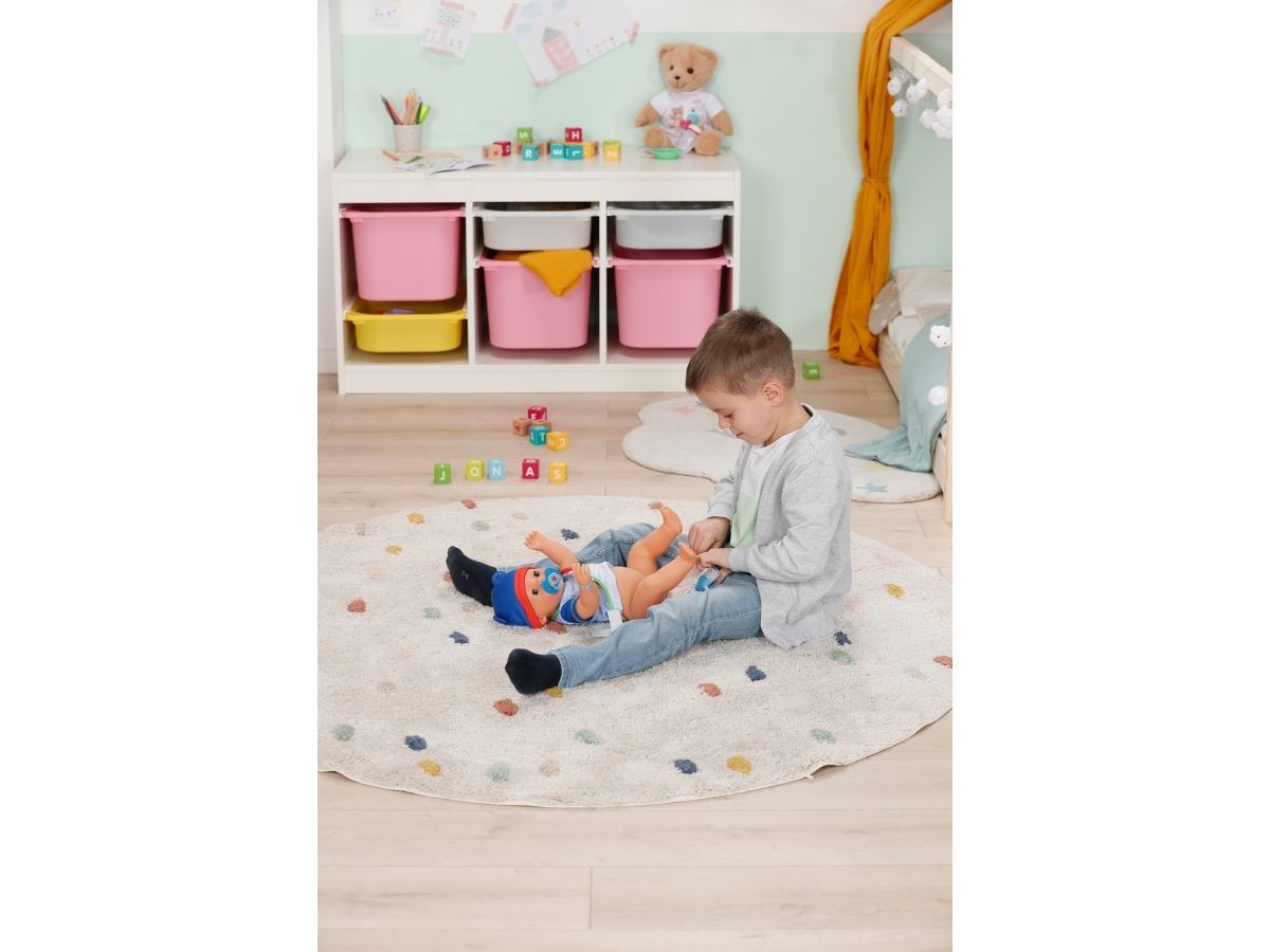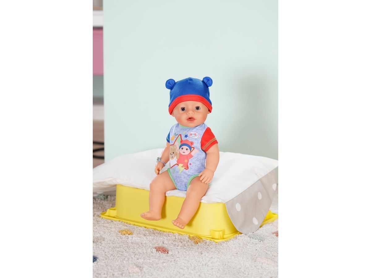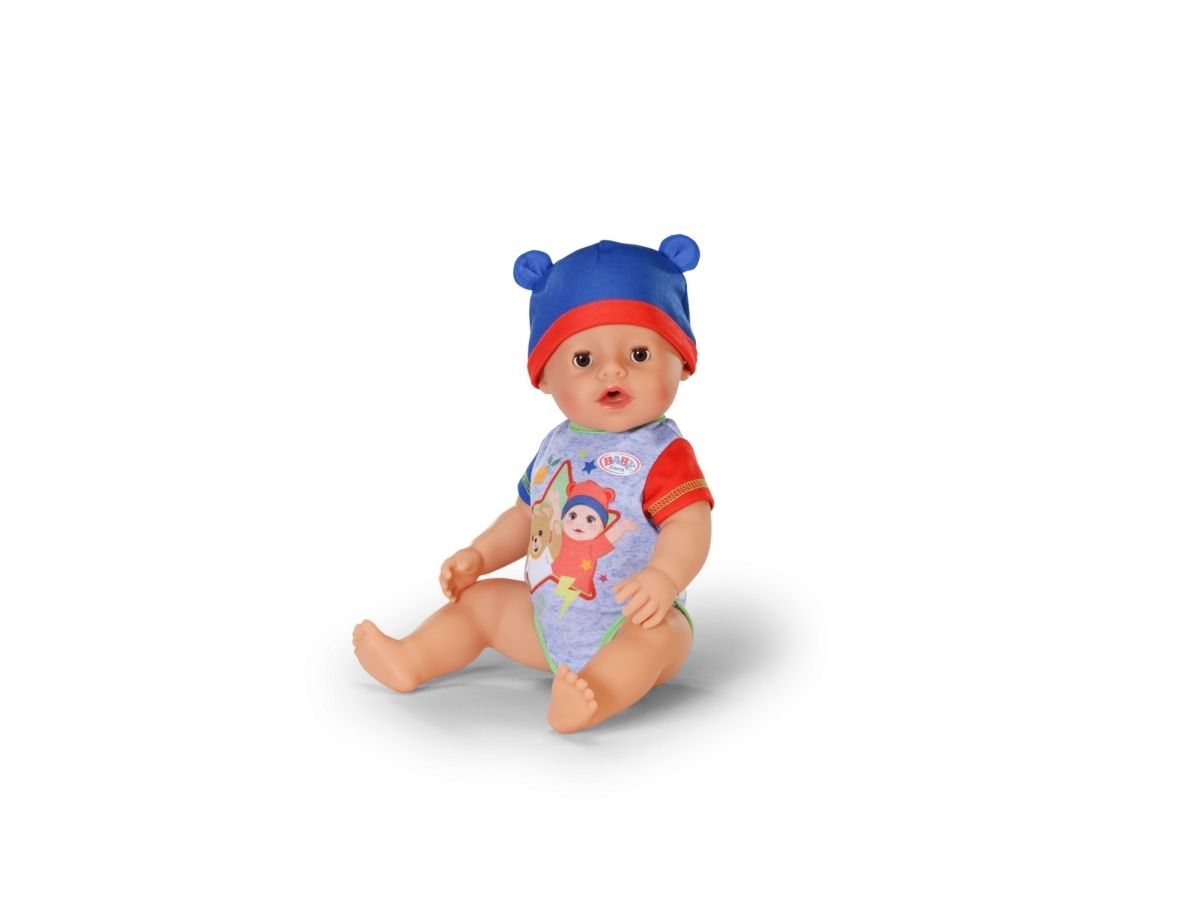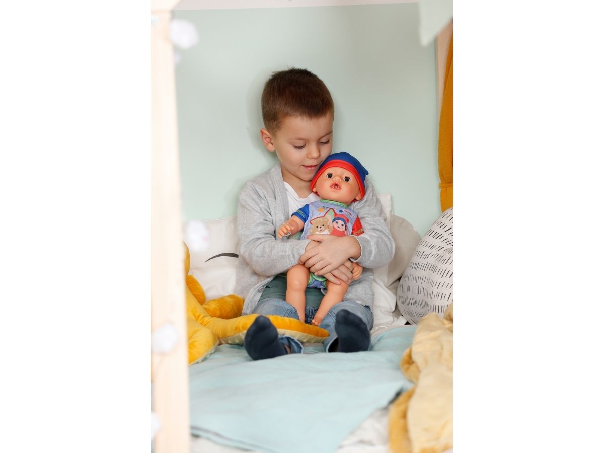 Hier kommt Jonas! Bereits bekannt aus der BABY born Animationsserie, welche auf YouTube und Toggo zu sehen ist, gibt es Jonas jetzt auch in seinem neuen Outfit und mit 10 Accessoires für euch zu Hause. Mit dabei hat er auch seinen magischen Teller: gibt man Wasser auf die Einlege- Fläche im Teller, erscheinen dort durch den Wasserzauber leckere Gerichte, die das Fütterspiel noch spannender machen. Setzt man ihn nach dem gespielten Essen (mit Wasser) oder Trinken auf ihr Töpfchen und drückt ihm auf den Bauch, erscheinen auch dort sein kleines und ihr großes Geschäft. Trinkt Jonas Wasser aus seinem Fläschchen, kann er sogar weinen und muss behutsam getröstet werden. Dabei hilft der magische Schnuller: dreht man ihn um 180 Grad, schließen oder öffnen sich seine Augen. Nochmal gedreht und das Gegenteil passiert. Legt man ihn zum Schlafen ins Bettchen, schließt sie ihre Augen auch ohne Schnuller. Doch Jonas kann noch viel mehr: Er ist super beweglich und kann sogar mit in die Badwanne genommen werden, denn er trocknet jetzt noch schneller: Um die Puppe nach dem Spiel richtig zu reinigen, kann das Bein entfernt werden, um eine größere Öffnung für die Reinigung zu schaffen. Wasser kann so viel einfacher abfließen. Für noch mehr kreatives Spiel bringt Jonas neben seinem Fläschchen, Schnuller, Teller, Löffelchen, Mahlzeiten und Töpfchen auch noch eine Windel, seinem Geburtspass und zwei Freundschaftsarmbändchen mit – für eine lange und liebevolle Freundschaft zwischen Kind und Puppe. In der gewohnten BABY born Qualität, die Generationen von Kindern seit 1991 begeistert. • Kann trinken, schlafen, weinen, baden und in die Windel machen • Durch den Fütterzauber erscheint sein Lieblingsessen bei Wasserkontakt im Tellerchen • Auch das große und kleine Geschäft erscheinen auf magische Weise im Töpfchen • Schließt und öffnet die Augen mit Schnuller-Drehung • Mit 10 Accessoires