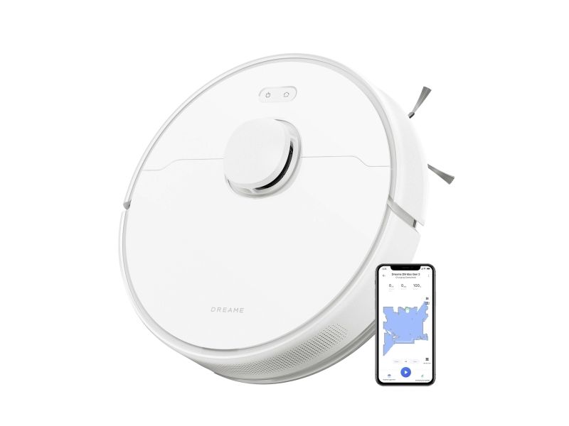D9 Max Gen 2, equipped with a 235ml water tank and 3 water flow levels, features 6,000Pa suction and a floating rubber brush to pick up dirt from various home surfaces. Smart Pathfinder technology helps avoid obstacles.Dreame D9 Max Gen 2. Dust container type: Dust bag, Product colour: White, Shape: Round. Dust capacity (total): 0.57 L, Base station functions: Charging, Noise level: 74 dB. Battery technology: Lithium-Ion (Li-Ion), Battery capacity: 5200 mAh, Runtime: 210 min. Diameter: 35 cm, Height: 96.8 mm, Width: 406.5 mm. Package volume: 140617 cm³, Package width: 442 mm, Package depth: 374 mm