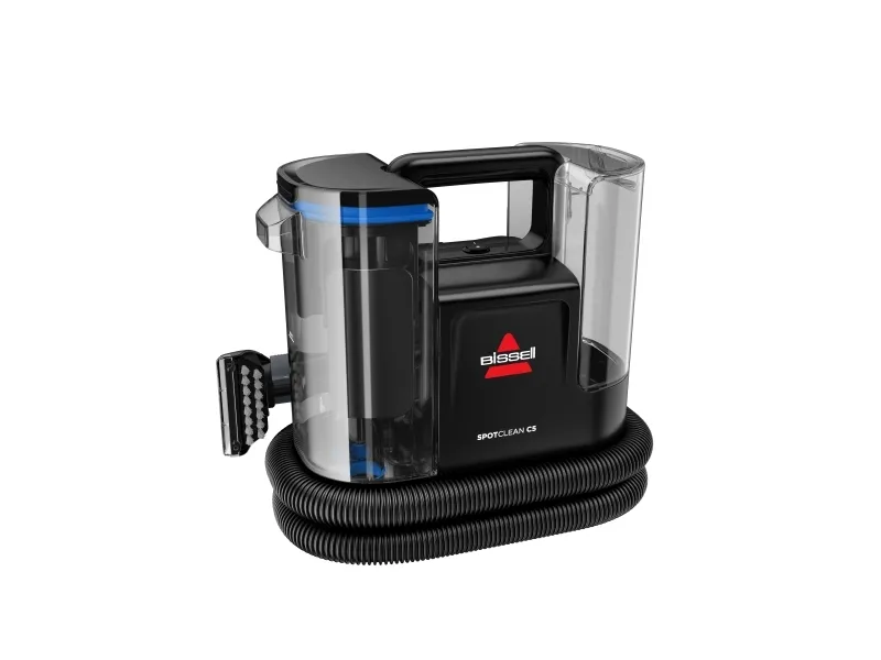 BISSELL SpotClean C5 Select is designed to tackle tough stains with ease. This carpet washer utilizes a wet cleaning method, featuring a two-tank system that ensures fresh water and cleaning solution are always kept separate from the dirty water, enhancing cleaning efficiency. With a tank capacity of 0.9-liter capacity, it is compact yet powerful enough for home use. The included triple action technology provides effective dirt and stain removal, ideal for carpets and upholstery alike.