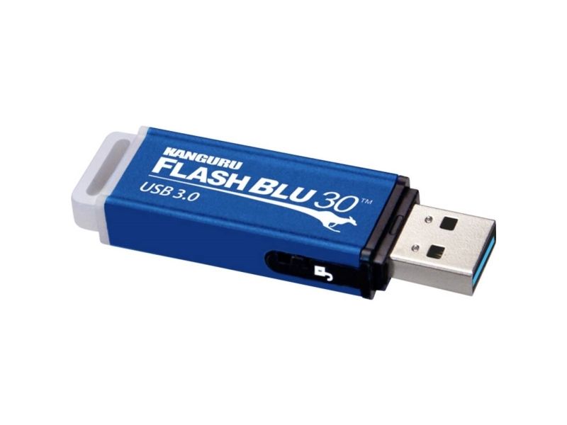 The Kanguru FlashBlu30 USB3.0 flash drive with physical write protect switch combines cost-effective data storage and convenience with superspeed data mobility. This high-performance USB3.0 makes the Kanguru FlashBlu30 one of the fastest drives on the market with data transfer read speeds of up to 145MB per second and write speeds of up to 45MB per second. The convenient physical write protect switch enables the user to quickly switch back and forth between read only and read/write modes to protect data from being accidentally overwritten or erased.