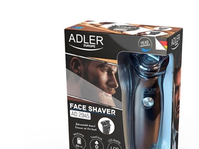 Waterproof: IPX7. The head can be cleaned with water. 3 shaving heads. LED display. Travel lock. Retractable beard trimmer at the back. Working time: 60 min.