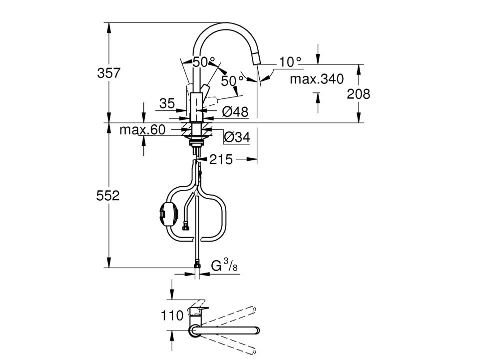 Grohe BauEdge Küchenarmatur - C-Auslauf 8.0l Chrom