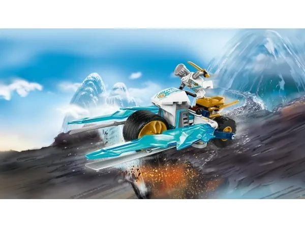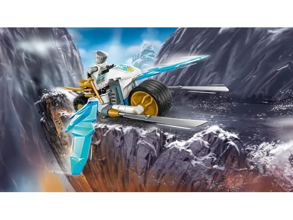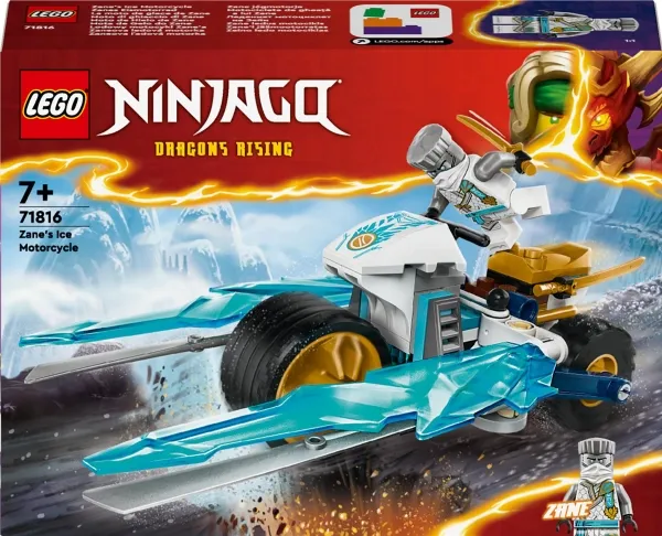 LEGO® NINJAGO® Zanes Eismotorrad (71816) lässt Jungen und Mädchen ab 7 Jahren rasante Actionszenen aus der 2. Staffel der TV-Serie NINJAGO Aufstieg der Drachen nachstellen. Dieses Ninja-Spielzeug für Kinder beinhaltet ein NINJAGO Motorrad mit drehenden Rädern, goldenen Klingen und Hinterradfederung. Wenn Kinder das Hinterrad hinunterdrücken, werden an beiden Seiten coole Eisklingen für den Angriffsmodus ausgeklappt. Dieses imposante Abenteuer-Spielset beinhaltet die Minifigur Zane, die man aufs Motorrad setzen kann. Zane trägt seine brandneue Turnierrüstung und schwingt bei vielen spannenden Actionrollenspiele in der NINJAGO Welt seine beiden Katanas. In dem breiten Angebot an LEGO NINJAGO Bausets finden Ninja-Fans weitere Mechs, Drachen und Tempel für spannende Actionrollenspiele. Jedes dieser Ninja-Spielsets kann auch mithilfe der LEGO Builder App gebaut werden, die dich und dein Kind auf ein ebenso einfaches wie intuitives Bauabenteuer mitnimmt.