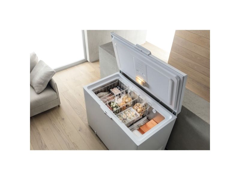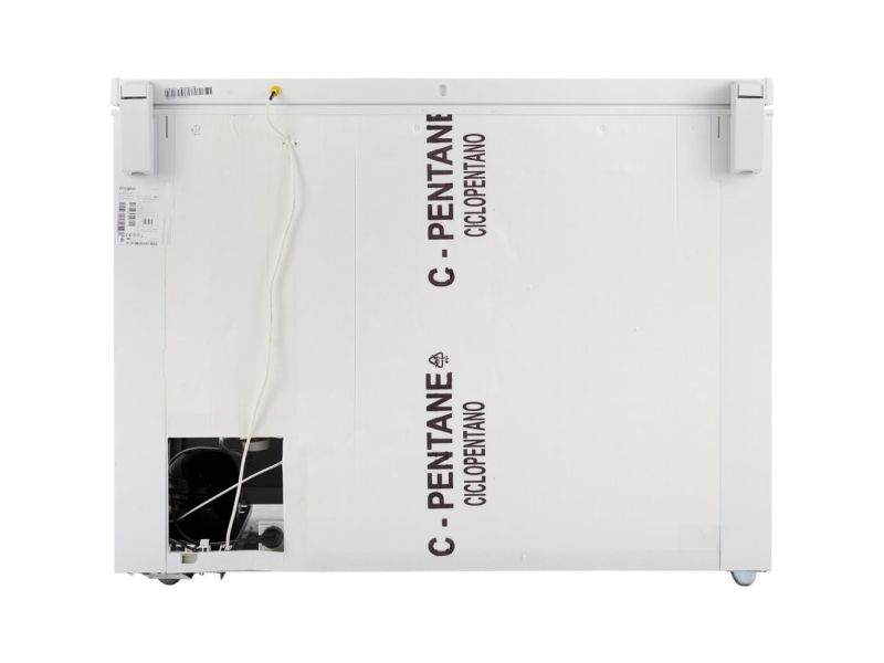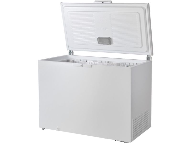 Whirlpool WHE31352 FO 3. Freezer net capacity: 315 L, Freezing capacity: 14.5 kg/24h, Storage time during power failure: 18 h, Noise level: 41 dB. Door hinge: Up. Energy efficiency class: D, Annual energy consumption: 189 kWh. Product colour: White