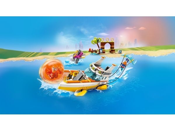 Begeistere junge Abenteurer und Fans von Videospielcharakteren ab 8 Jahren mit Tails’ Abenteuerboot (76997). Dieses Bauset für Kinder strotzt vor Funktionen und interaktiven Spieloptionen. Dieses LEGO® Sonic the Hedgehog™ Set zum Sammeln und Spielen beinhaltet ein Boot mit eingebautem Geschwindigkeitskugel-Katapult am Bug, Karaokemaschine und Tanzfläche. Am Heck befinden sich Verbindungselemente fürs Parasailing. 4 Charaktere sowie das Modell einer Insel mit 3 Ringen, einem Bogen und einer Strandliege laden zu vielen spannenden Rollenspielen ein. Dieses coole Spielzeug lässt Fans von Sonic unzählige Geschichten mit Sonic und Tails darstellen. Die beiden können eine Tanz- und Karaoke-Party auf dem Boot feiern, Wasserski fahren und zum Parasailing gehen oder auf der Insel relaxen, nachdem sie Jawz besiegt und einen Tocky gerettet haben. LEGO Sonic the Hedgehog Spielzeuge kombinieren rasante Action mit einem fantasievollen Spielerlebnis. Auch die LEGO Builder App bietet ein intuitives Bauabenteuer. In der App können Kinder 3D-Ansichten der Modelle vergrößern und drehen, Sets speichern und ihren Baufortschritt verfolgen.