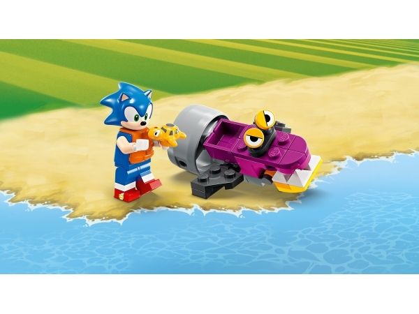 Set zum Sammeln und Spielen: Das Spielset beinhaltet ein Boot mit eingebautem Katapult, die Figuren Tails und Sonic mit neuen Gesichtern, die Charaktere Tocky und Jawz sowie eine Insel mit Bogen und 3 Ringen
