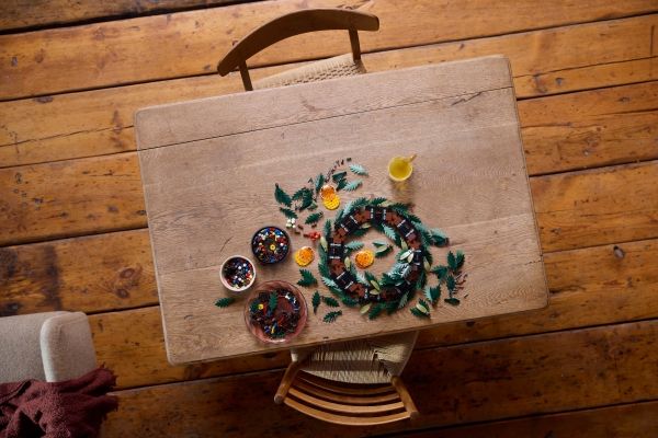 Baubare Wohn-Deko: Der LEGO® Icons Weihnachtskranz ist ein achtsames Bauprojekt für Erwachsene, bei dem auch Freunde und Verwandte mitmachen können