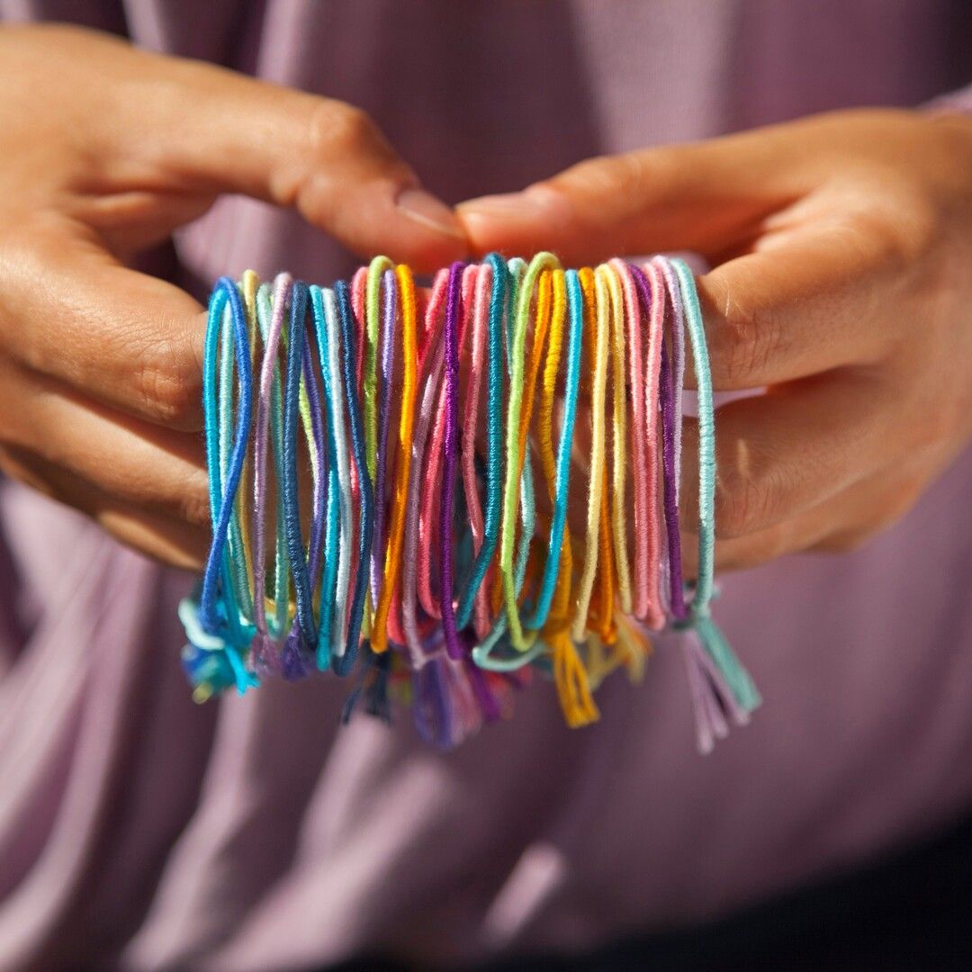 UNIKKE KREATIONER Hvert armbånd er unikt! Ændr tykkelsen, løkkestilen, trådmængden og farvekombinationerne for at skabe unikke armbånd og tilbehør.