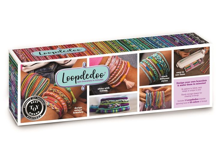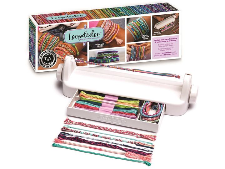 Børn kan designe venskabsarmbånd, halskæder, pandebånd, ankelkæder og bælter på få minutter med den patenterede Loopdedoo armbåndsmaskine. Hver kreation er unik! Ændr tykkelsen, løkke stilen, trådmængden og farvekombinationerne for at skabe helt unikke tilbehør. Alder 6+.