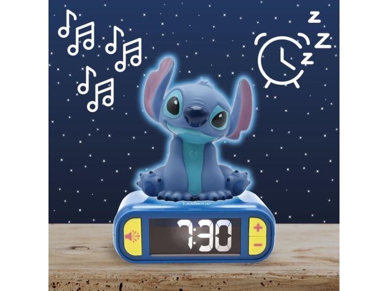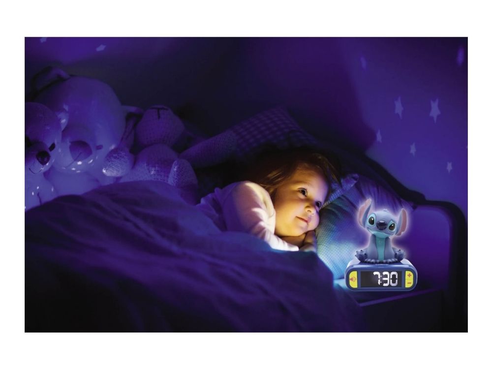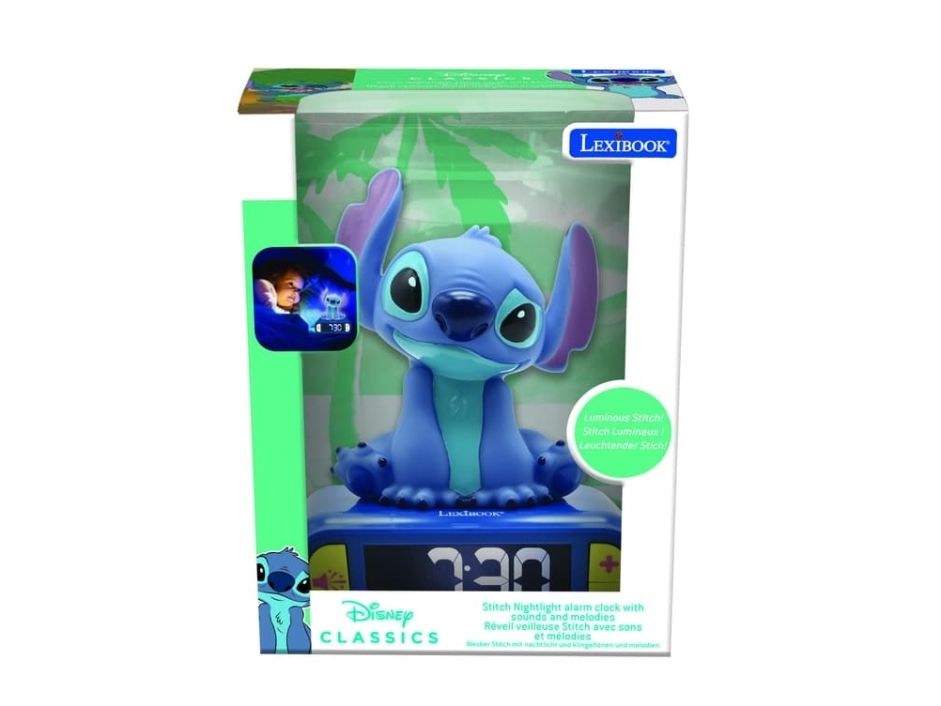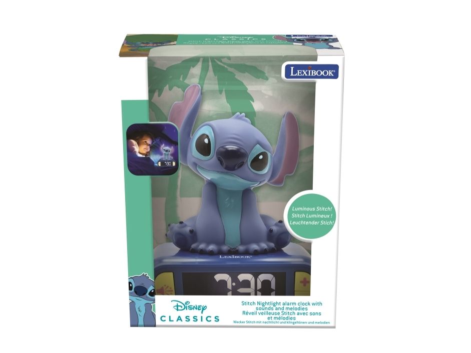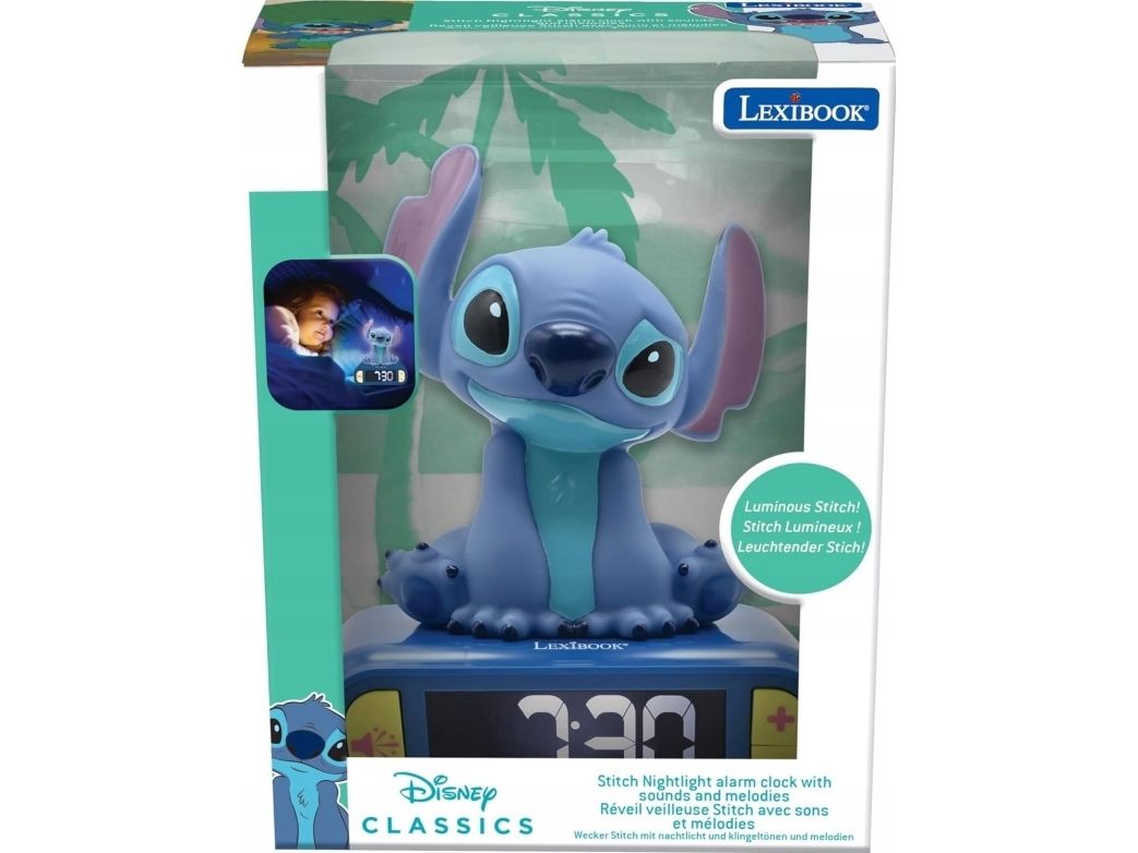 The Lexibook Disney Classics alarm clock provides a delightful addition to any child's room with its Stitch design. This desk-mountable electronic clock features a backlit LCD display, making it easy to read the time at night. The gentle night light function adds a cozy ambiance, perfect for bedtime routines. Additionally, it offers six different sounds for alarms to suit various preferences, making waking up a more enjoyable experience. The top pressing activated snooze function allows for a few extra minutes of sleep when desired.