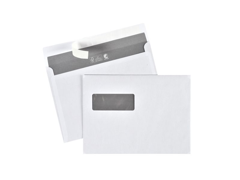 Briefumschläge C5 mit Sichtfenster, selbstklebend, weiß, 500 Stück.