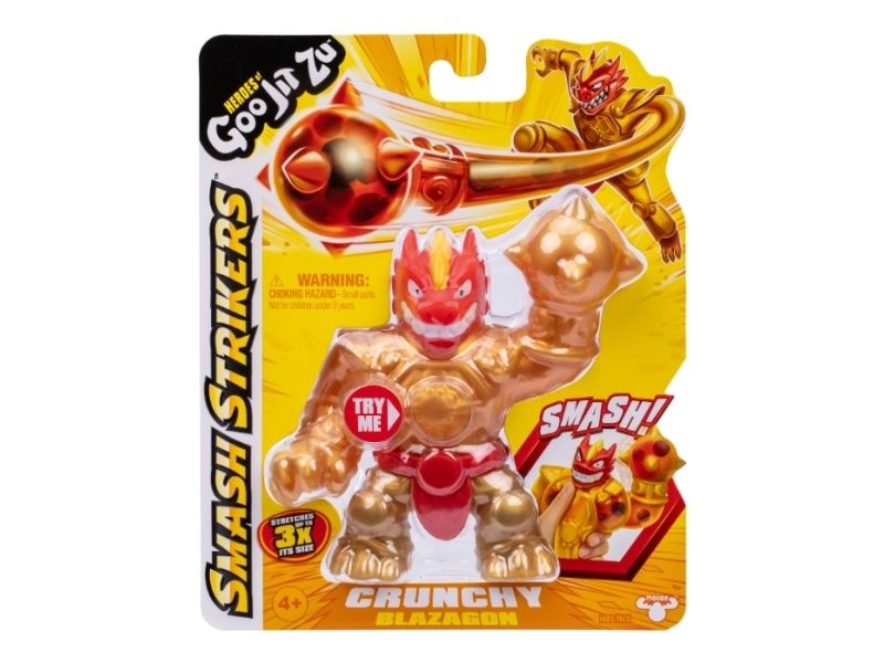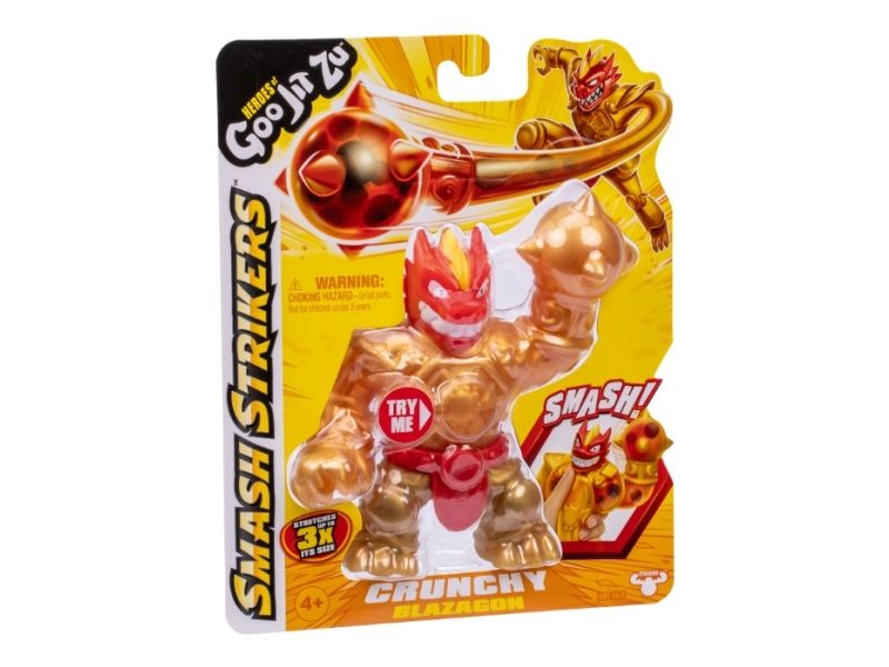 Stretch, squish, and SMASH with Blazagon to see who comes out victorious. Collect all 5 NEW Heroes of Goo Jit Zu Smash Strikers for the ultimate stretchy SMASHING action.