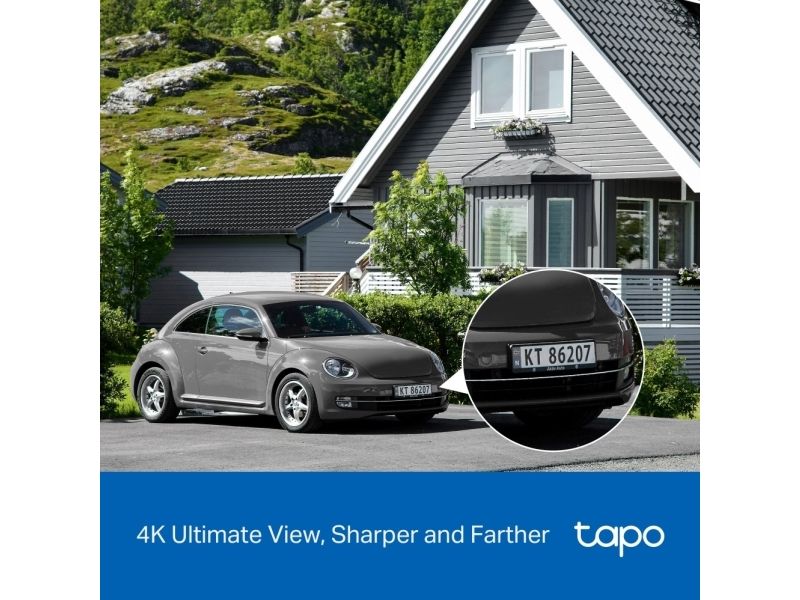 4K Ultimate View, Sharper and Farther Tapo 4K cameras deliver sharper, more detailed live views, making them perfect for capturing finer details like license plates, lush lawns, and moving pets.