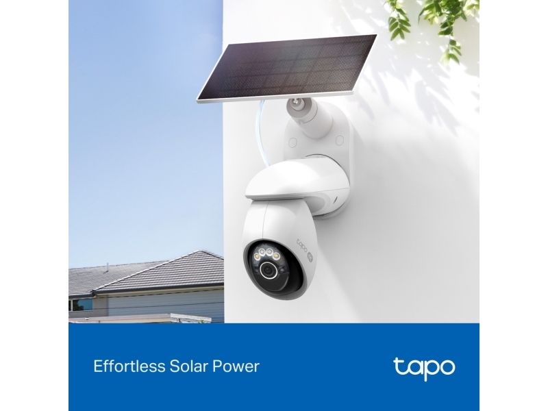 Voice-Activated View Works with Amazon Alexa and Google Home for hands-free automation.TP-Link Tapo Solar-Powered Pan/Tilt Security Camera Kit. Type: IP security camera, Placement supported: Outdoor, Connectivity technology: Wired & Wireless. Mounting type: Ceiling/wall, Product colour: White, Form factor: Bullet. Lens viewing angle, horizontal: 88°, Lens viewing angle, vertical: 45°, Lens viewing angle, diagonal: 105°. Sensor type: CMOS, Optical sensor size: 25.4 / 2.7 mm (1 / 2.7"). Digital zoom: 18x, Fixed focal length: 4 mm