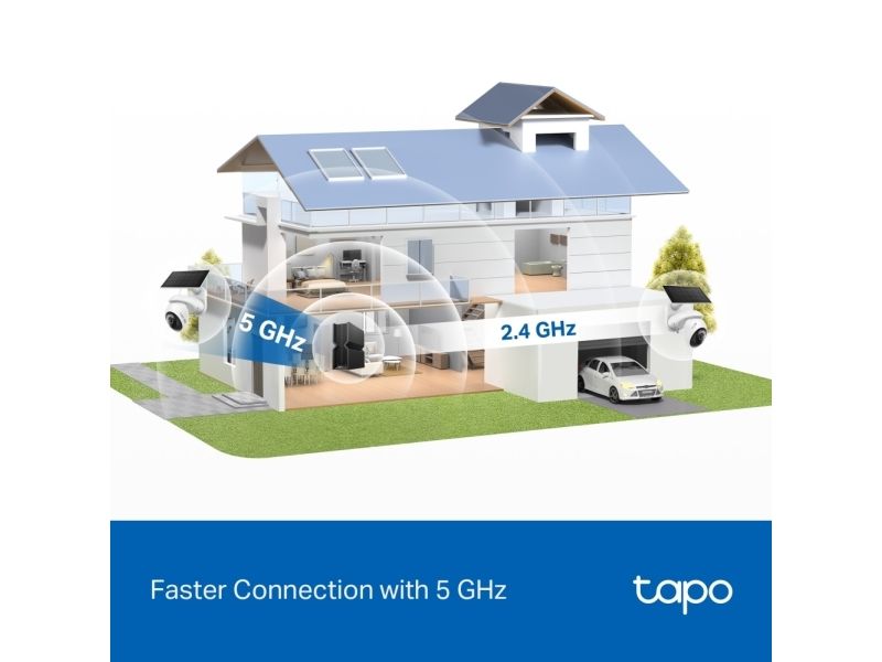 Faster Connection with 5 GHz Connect the camera to 5 GHz for faster speed or 2.4 GHz for longer distance.△ Enjoy better connectivity to watch lag-free 4K live views.