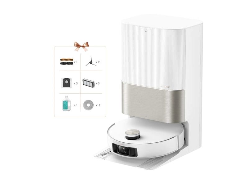 Dreame X50 Ultra Complete. Dust container type: Combi, Product colour: Black, Stainless steel, White, Shape: Round. Base station functions: Charging, Purification, Dust capacity (total): 0.395 L, Water tank capacity: 4.5 L. Battery capacity: 6400 mAh, Runtime: 220 min, Battery life: 205 m². Height: 111 mm, Width: 350 mm, Depth: 350 mm