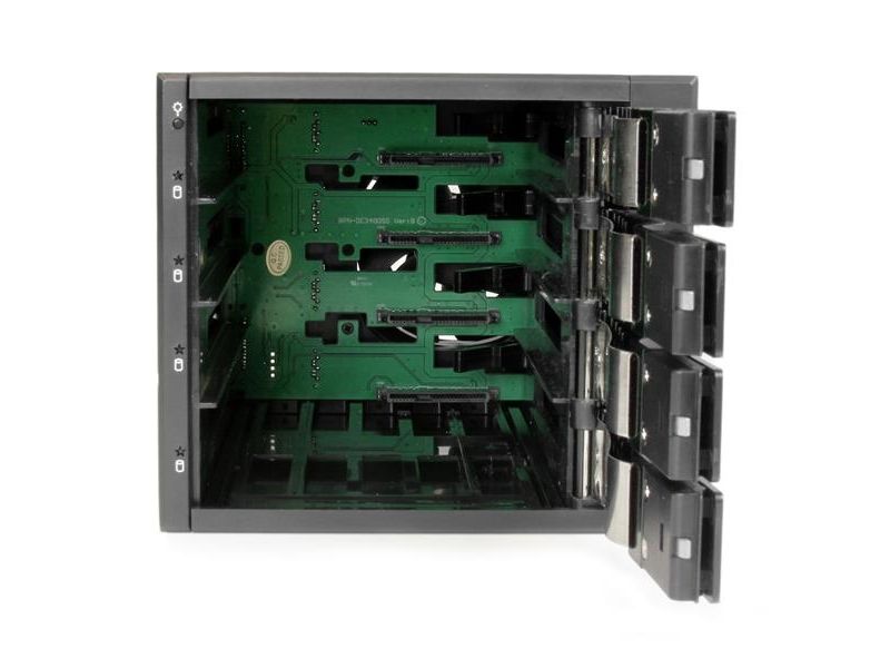 Connect and hot swap four 3.5in SATA III or SAS II hard drives to your computer system in three 5.25" bays, with support for transfer speeds up to 6 Gbps. The HSB4SATSASBA Removable 4-drive Backplane makes inserting and removing drives fast and easy, by turning three 5.25" bays into a hot-swappable interface for up to four 3.5" SATA or SAS hard drives (HDD).