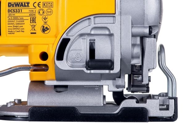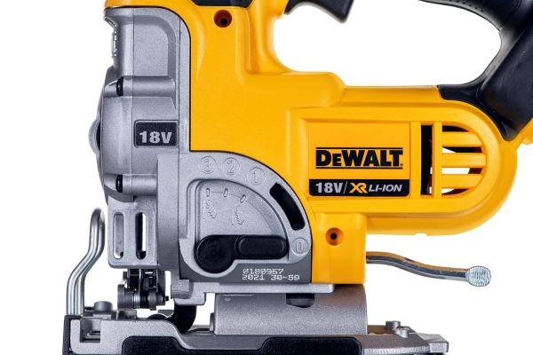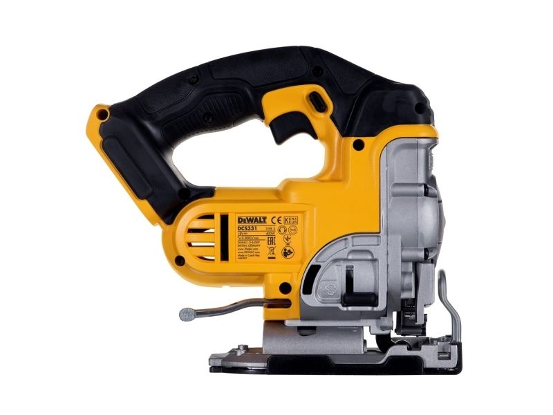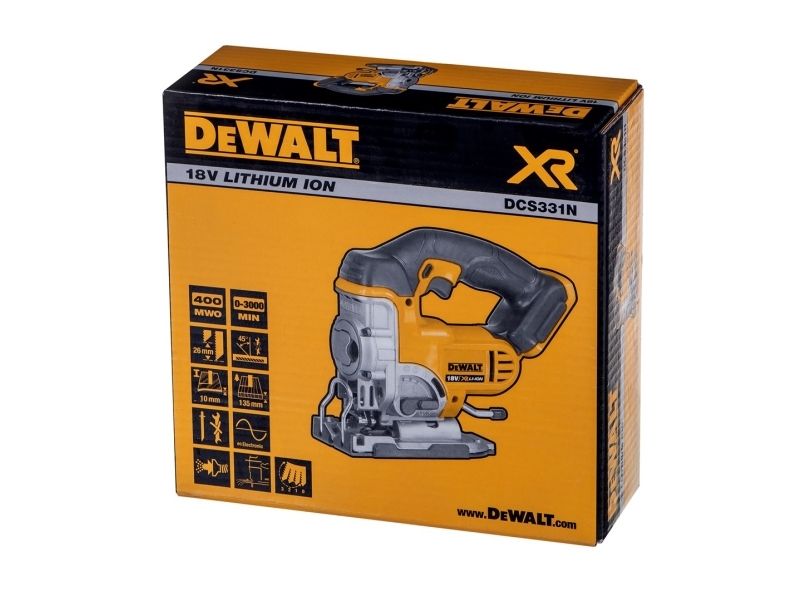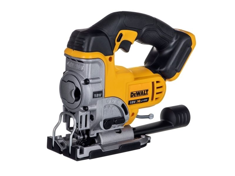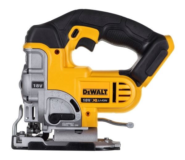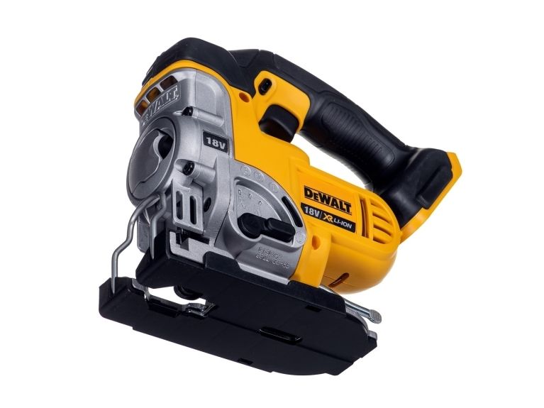 Latest generation premium Jigsaw featuring new XR Lithium Ion Technology Part of the intelligent XR Lithium Ion Series designed for efficiency and making applications faster Powerful & Highly efficient DEWALT PM47 fan-cooled motor with replaceable brushes. delivers fast cutting action up to 3000 strokes per minute maximising user productivity Intelligent variable speed trigger & lock-off switch for quick controlled cuts and enhanced work safety Tool-free adjustable shoe with anti-scratch cover bevels 45 degrees in both directions Quick and easy patented keyless blade change system, accepts T-shank blades Patented anti-vibration counter-balance mechanism and rubber grip providing a smooth operation 3-position pendulum action controls the aggressiveness or smoothness of cuts Dust blower keeps line of cut clear of dust and debris Modular component design for trouble free servicing Rubber coated grip to reduce surface vibration and user fatigue Improved ergonomic design