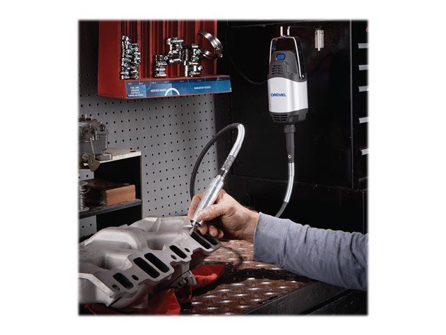 Power meets precision with the Dremel 9100 Fortiflex heavy-duty flex shaft tool. Designed for detailed projects, the flex shaft tool boasts a powerful 2.5-amp motor that provides high torque at low speeds making, it perfect for power-carving, shaping and grinding applications. Its flexible shaft includes a patented bearing system for durability and cool operation - and its precision handpiece is engineered for control and comfort even with extended use. In addition, the tool's three-jaw chuck enhances versatility by accepting accessories with shank sizes from 0 inches to 5/32 inch. Plus, with the Fortiflex's variable-speed foot pedal, you can easily match the tool speed to the application, hands-free.