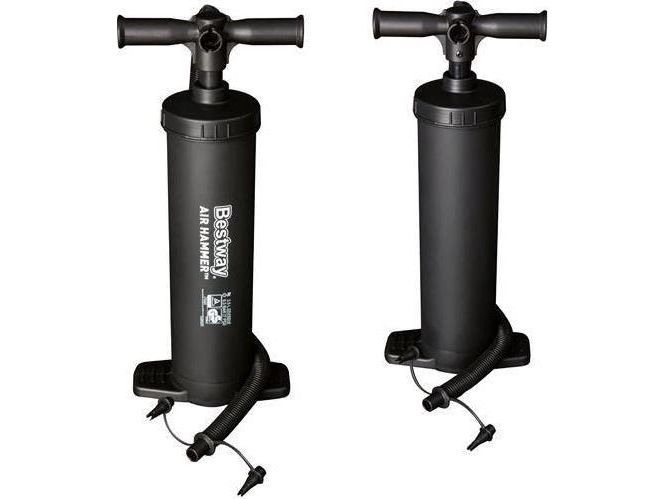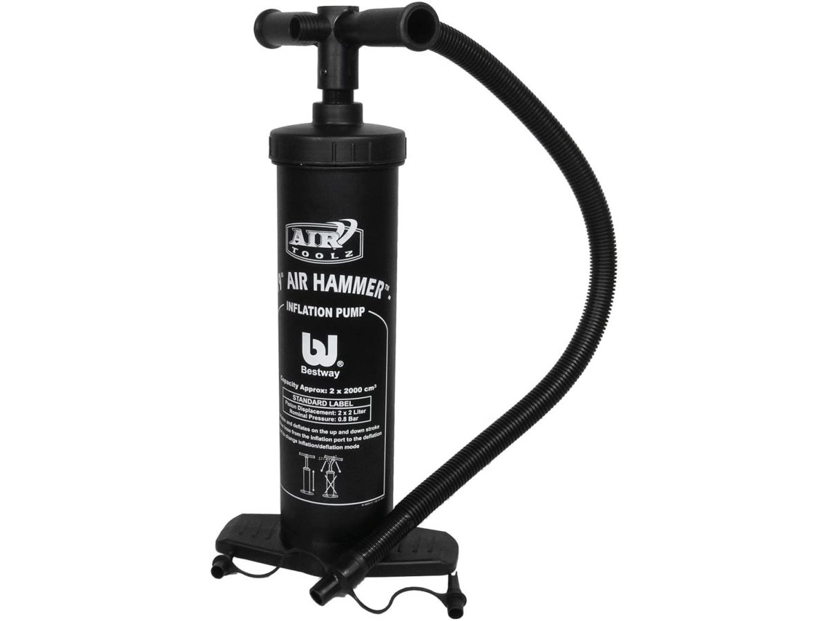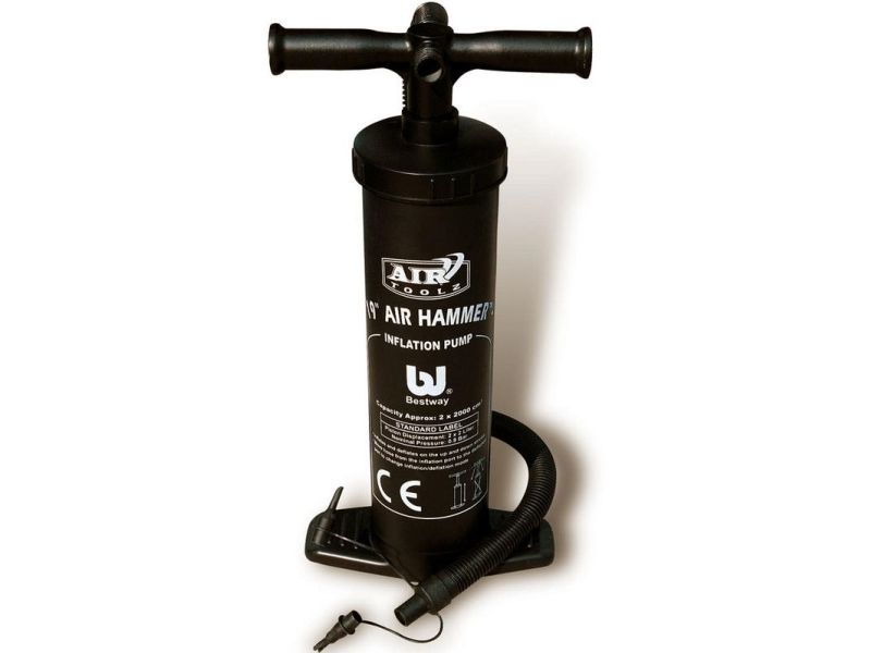 AIR HAMMERTM–INFLATION PUMP - Stroke volume: 3.5L/cycle - Inflates/deflates on up and down stroke - Easily switches from inflation to deflation - Flexible hose - 3 valve adaptors to fit nearly every inflation valve - Heavy-duty construction Content: One hand pump