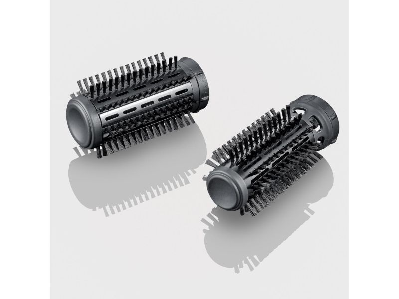 Um Ihr Styling-Erlebnis zu maximieren, sind im Set zwei zusätzliche Zubehörteile enthalten – eine 40-mm- und eine 50-mm-Bürste. Diese Accessoires geben Ihnen völlige Freiheit beim Styling und ermöglichen Ihnen sowohl voluminöse als auch glatte Frisuren. Der innovative, um 360° drehbare Kabelstecker ermöglicht es, dass sich der Netzstecker während der Verwendung frei mit dem Gerät drehen kann. Dies verhindert Kabelsalat und macht den Styling-Prozess noch reibungsloser.