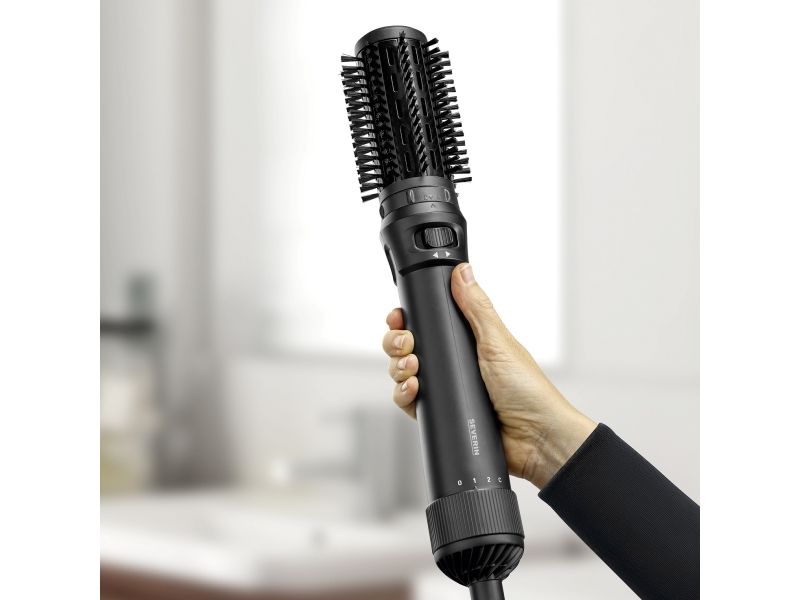 Erleben Sie ein neues Level des Haarstylings mit unserer leistungsstarken Heißluftbürste, die perfekt durch das Haar gleitet und erstaunliche, glänzende und voluminöse Ergebnisse liefert. Mit einem beeindruckenden 1.000-Watt-Motor bietet diese Warmluftbürste zwei kombinierte Temperatur- und Leistungsstufen sowie eine haarschonende Kaltluftfunktion. Dadurch können Sie Ihr Haar gleichzeitig trocknen und stylen. Das spart Ihnen Zeit und sorgt für professionelle Ergebnisse zu Hause.