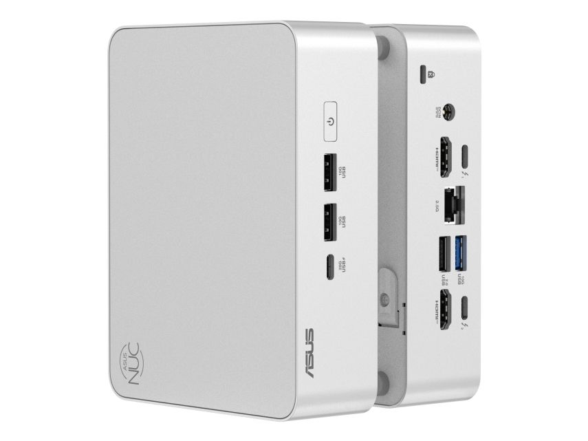 ASUS NUC 15 Pro+ RNUC15CRSV500002 - Barebone - Mini-PC 1 x Core Ultra 5 235H / bis zu 5 GHz - vPro - RAM 0 GB - Arc 140T - IEEE 802.11ax (Wi-Fi 6), IEEE 802.11be (Wi-Fi 7), Bluetooth 5.4, 2.5 Gigabit Ethernet, Gigabit Ethernet - silber