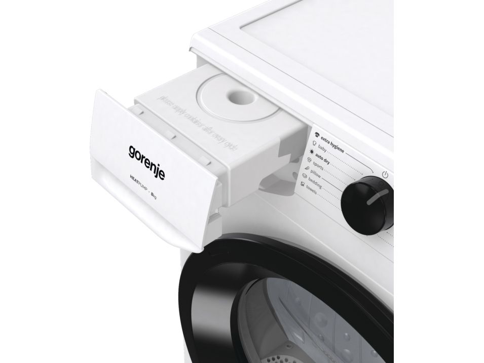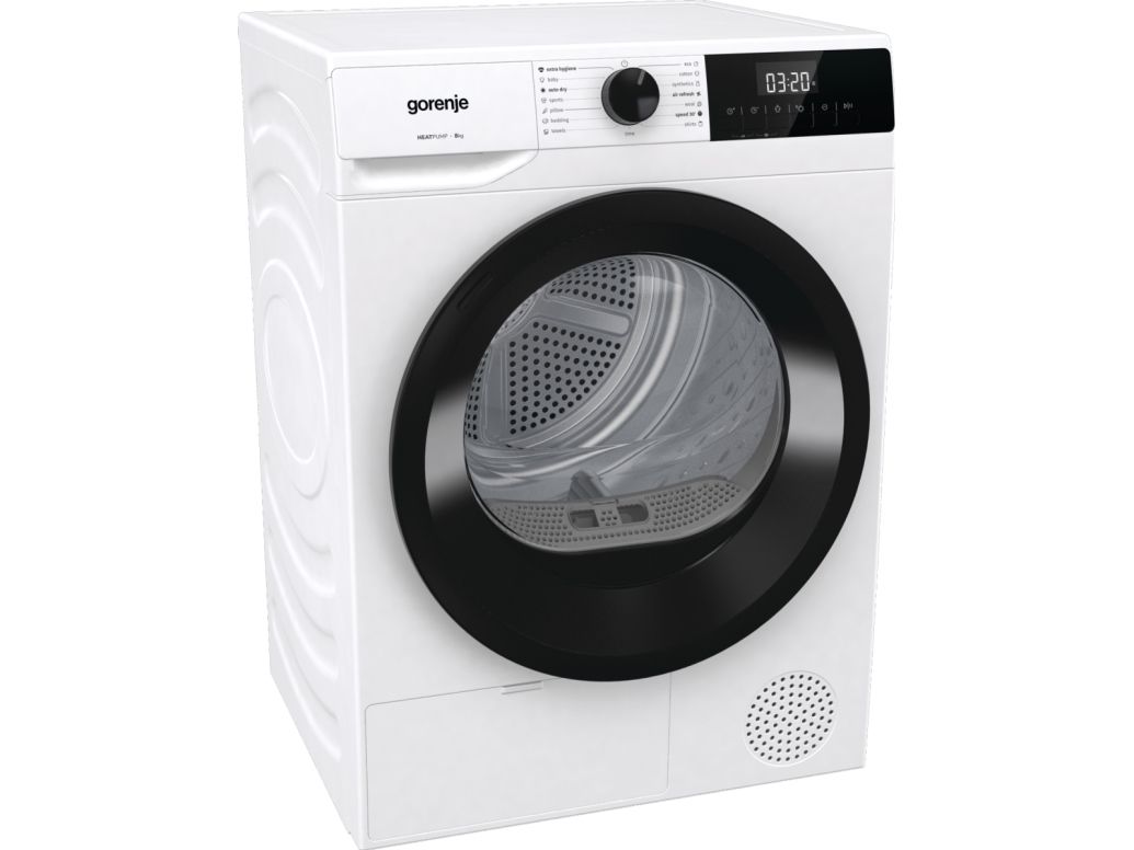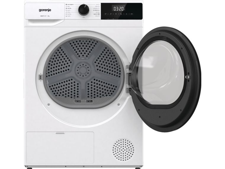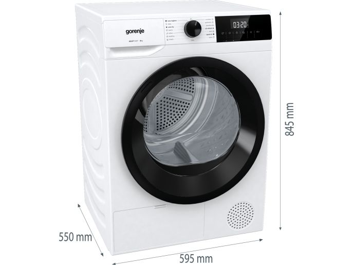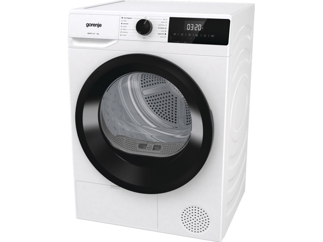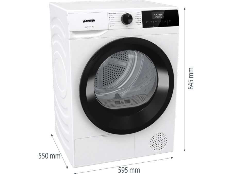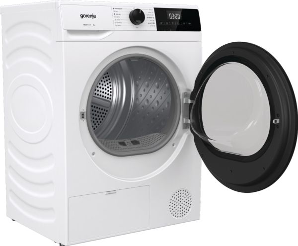 The Gorenje G200 DHNE82 dryer is designed to meet diverse drying needs with its 8 kg maximum drying capacity. Utilizing heat pump technology, this electric dryer ensures efficient drying while minimizing energy consumption. With 15 drying programs, including options for towels, cottons, and sportswear, users can select the optimal setting for any load type. Featuring an intuitive LED display and moisture sensor, the Gorenje G200 makes it easy to achieve the desired level of dryness without over-drying clothes.