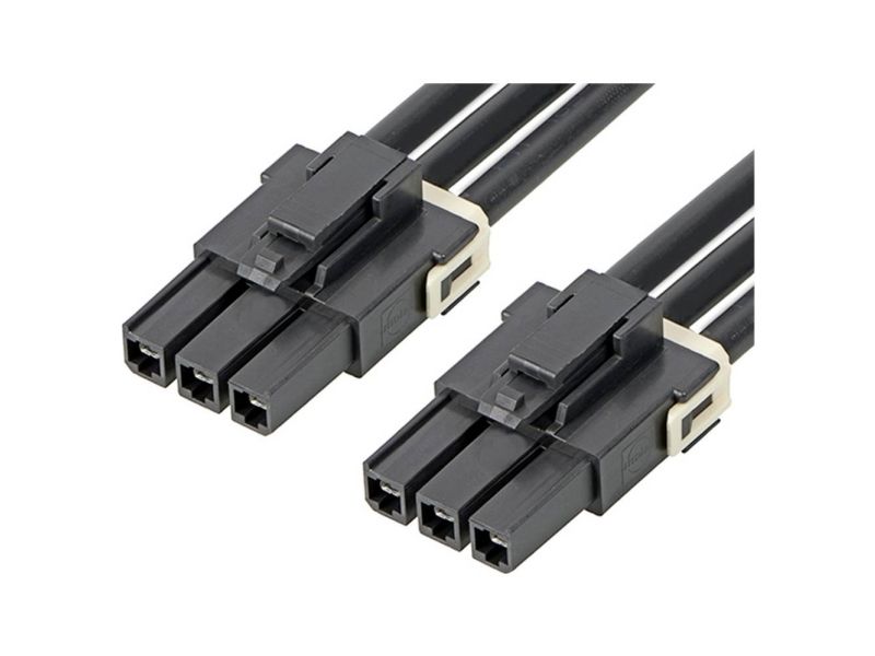 MOLEX 216400-1033 Mega-Fit Female-to-Mega-Fit Female Off-the-Shelf (OTS) Cable Assembly, Single Row, 600.00mm Length, Tin Plated, 3 Circuits, Black