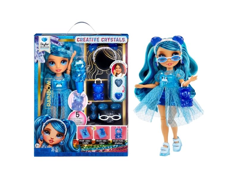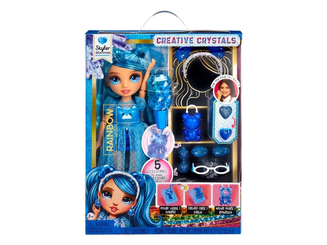 INSPIRE KIDS TO BE CREATIVE: It’s so easy to create crystal accessories for me and my Rainbow High Creative Crystals Fashion Doll with the crystal accessory make it kit. My creativity has no limits with Rainbow High. GIFTABLE PACKAGING: The package makes for a perfect DIY gift, it’s a doll + crystal accessory make it kit. It inspires creativity and imagination. WATCH ON YOUTUBE and NETFLIX: Watch the new episodes of the Animated Series on YouTube. And catch up from the beginning on Netflix. Just search for "Rainbow High”.Rainbow High Creative Crystals Fashion Doll- Skyler. Doll type: Fashion doll, Doll's gender: Female, Recommended age (min): 8 yr(s). Height: 280 mm. Material: Plastic, Product colour: Multicolour