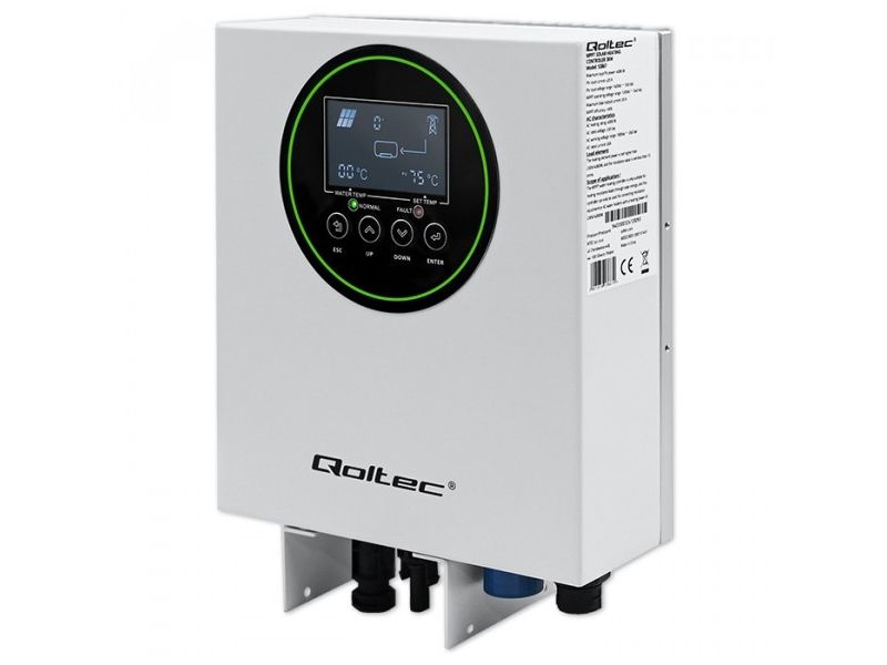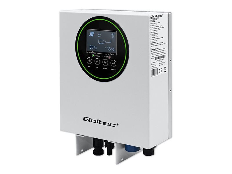 The ECO Solar Boost from Qoltec serves as an efficient power converter designed for water heating applications. With a power output of 4000 W, it ensures reliable energy conversion while utilizing a wide input voltage range of AC 110-300 V. This solar inverter features a user-friendly LCD display for easy monitoring and operation. Equipped with protections including overheat, overload, and short-circuit protection, it ensures safe and dependable performance under varying environmental conditions. The inclusion of a temperature sensor and MPPT (Maximum Power Point Tracking) charge controller enhances energy efficiency, making it suitable for diverse applications and environments. Built with durability in mind, the aluminum housing ensures longevity even in challenging conditions. The ECO Solar Boost operates between minimum temperatures of -20°C and maximum temperatures of 55°C. Remote management capability through Wi-Fi allows for monitoring and control, giving users peace of mind and flexibility. This versatile solar inverter is a choice for those looking to harness solar energy effectively and safely.