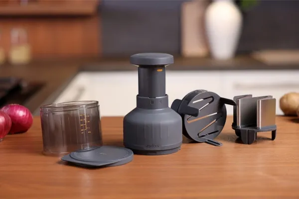 The Zick-Zick food chopper is one of Karl Zysset's first great inventions and has been a favourite of our customers ever since. Even more reason for us to keep improving this classic. The design of the Zick-Zick 3 is based on Karl's very first food chopper and optimises this tradition towards maximum efficiency and ergonomics. The slim, elegant shape and the ergonomically widened plunger ensure a secure grip and optimal power transmission during use. All parts are made of high quality materials to ensure extra robustness and durability. The bowl plate with integrated scraper allows for col