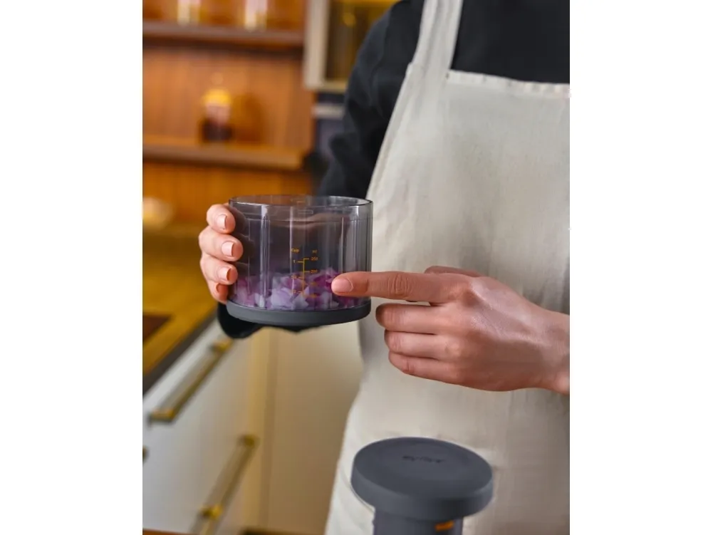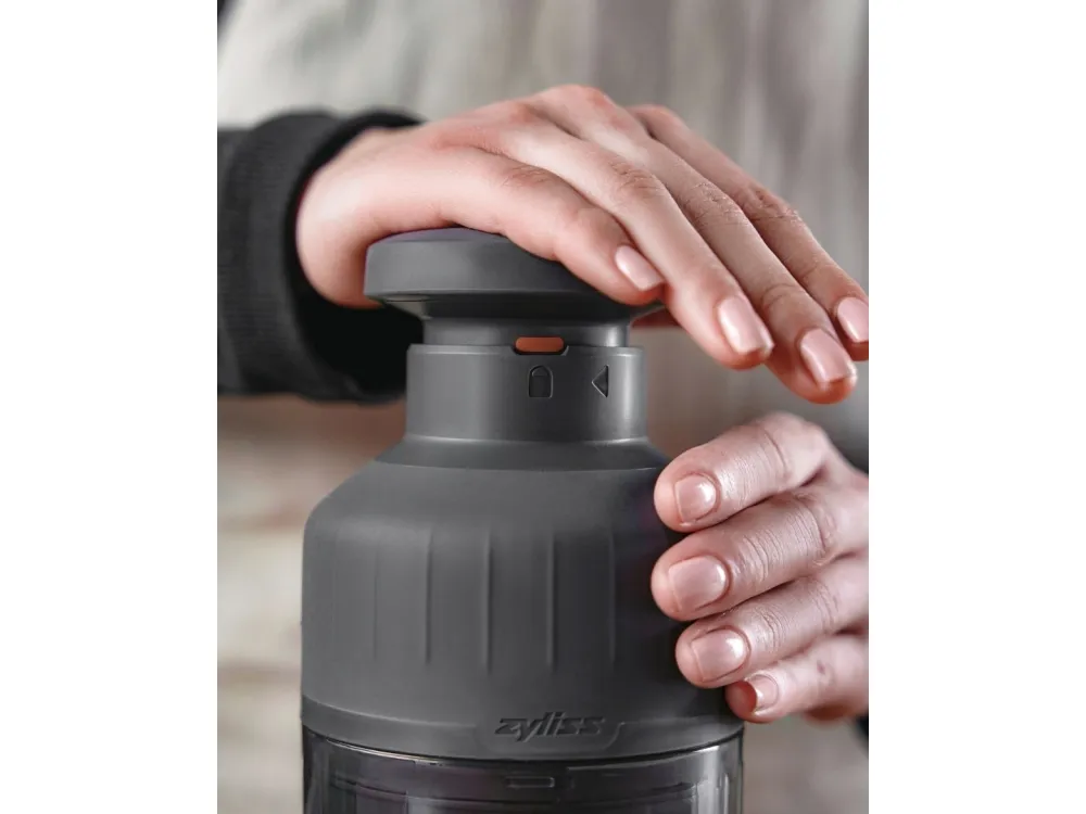Zick-Zick 3 hackar inte bara snabbt, den kan också rengöras på nolltid. Hela knivenheten kan enkelt tas bort, rengöras och sättas ihop igen. Rengöring är också möjlig i diskmaskinen. Tack vare sin smala formZick-Zick 3 kan nu förvaras ännu mer kompakt. Allt du behöver göra är att skjuta ner kolven i behållaren och låsa den ordentligt med en enkel vridning.