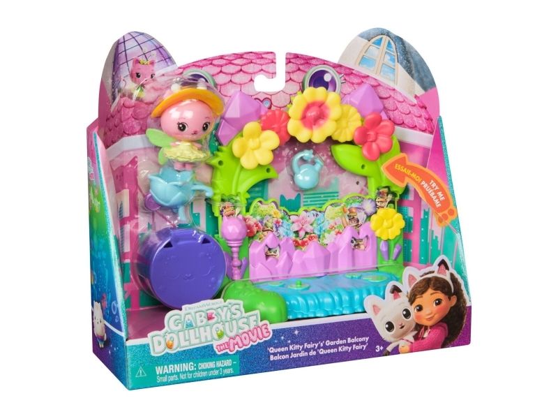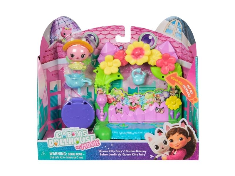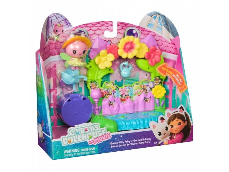 Includes: 1 Playset, 1 Kitty Fairy Movie Figure, 5 AccessoriesGabby's Dollhouse : The Movie, Queen Kitty Fairy's Garden Balcony, with Toy Figure & Dollhouse Accessories, Kids Toys for Girls & Boys Ages 3 and Up. Type: Action/Adventure, Recommended age (min): 3 yr(s), Product colour: Multicolour