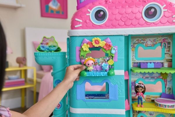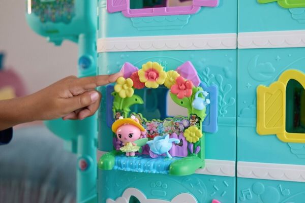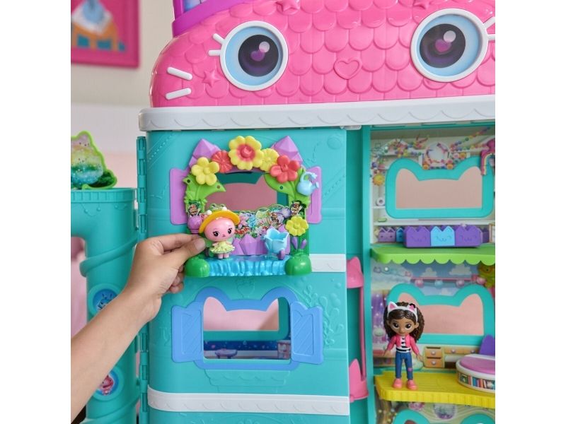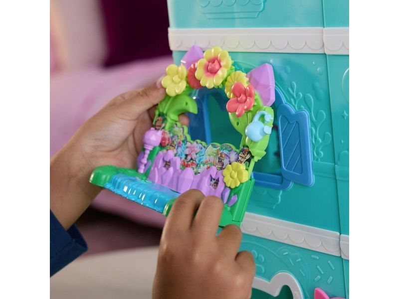 Relive the magic of Gabby’s Dollhouse: The Movie, with Queen Kitty Fairy's Garden Balcony. This delightful set includes a Kitty Fairy movie figure and various accessories for hours of pretend play. The balcony attaches seamlessly to any version of the Gabby’s dollhouses, offering endless possibilities for storytelling with these learning toys. Decorate the balcony with peggable pieces or discover a hidden reveal by lifting the top section, adding layers of excitement to playtime. As you explore, enjoy the spinning flower decoration that provides satisfying fidget play. Unbox the Dollhouse Delivery, just like Gabby does in the show, to find a surprise accessory, then scan the QR code to unlock a surprise in the Gabby's Dollhouse app. This set is a fun-filled way to inspire pretend play and invites meow-mazing explorations, with these adorable Gabby cat toys for kids. Gabbys dollhouse toys are purrfect gifts for kids to relive cherished moments from the Gabby movie, and for creating new adventures in Gabby's dollhouse, with toddler toys for kids, like doll house accessories & furniture, her meow-mazing cat friends and fin-tastic mermaid toys, for endless hours of cat-terrific adventures (each sold separately)