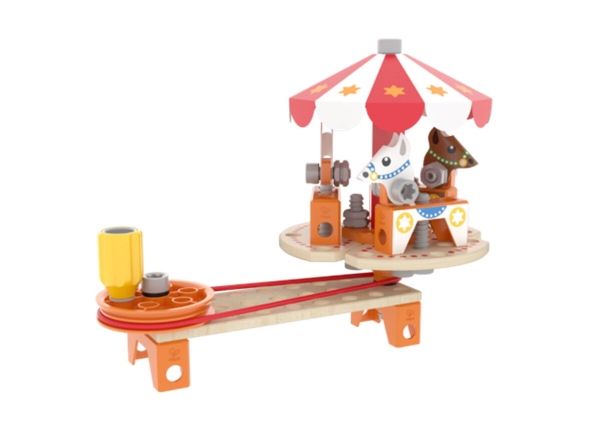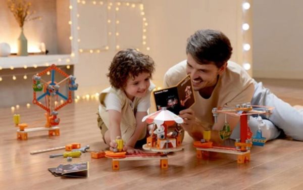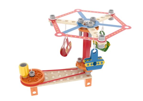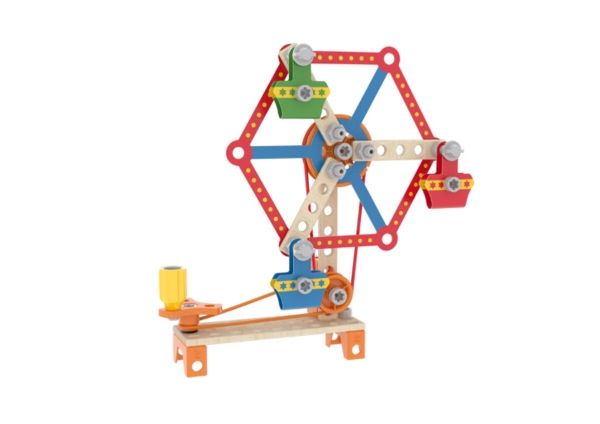 Follow the inspiration cards to experience the excitement of building and playing with various amusement park facilities like carousels, Ferris wheels, and swivel flying chairs. You can even follow your engineering intuition and create your own.