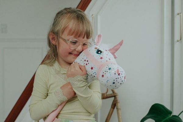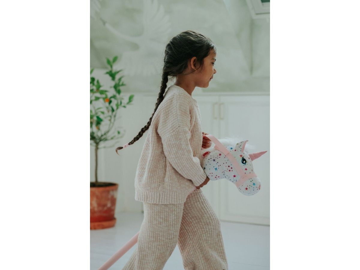 With a KREA® hobby horse, playtime easily becomes full of speed and imagination. In fact, the beautiful horse with rainbow-colored stars is not a horse at all, but a magnificent unicorn ready for fantastic adventures. Height 75 cm.