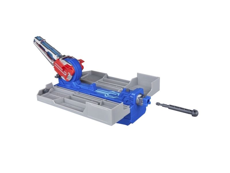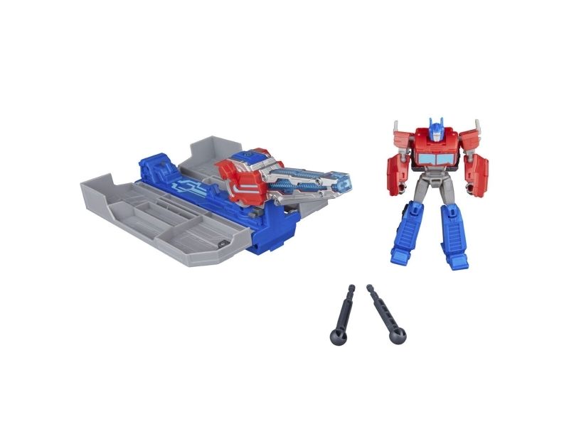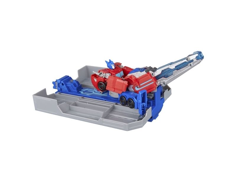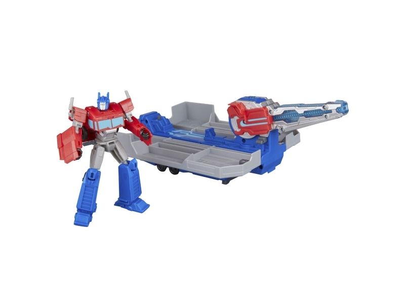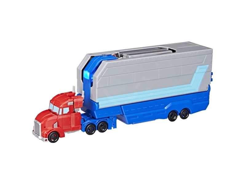 Get ready to roll into battle with the Transformers Optimus Prime Battle Trailer playset! There are so many ways to play with this awesome Transformers toy. Put the 5-inch (12.5 cm) Optimus Prime figure into toy truck mode, then attach the playset in trailer mode and roll out! Then, convert the Optimus Prime action figure into robot mode and flip the blaster on the playset to see it open up into a battle station. The figure can sit in the battle station and man the light-up blaster or the projectile launcher. Kids can load a projectile into the launcher and launch it with the press of a button! With lights and unique sounds in each mode, kids can feel like part of the exciting action of the Transformers: EarthSpark show. Electronic toys like the Optimus Prime Battle Trailer make great gifts for boys and girls 6 and up who love Transformers figures and toy cars. TRANSFORMERS and HASBRO and all related trademarks and logos are trademarks of Hasbro, Inc.