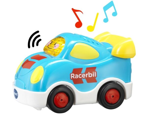 On your mark, get set, go! Perfectly sized for little hands, the Toot! Toot! Race Car from VTech® helps toddlers strengthen motor skills and hand-eye coordination. Your little racer can press the light-up button to hear playful sing-along songs. Place this race car on SmartPoint® locations on Toot! Toot! playsets (sold separately) to activate even more imaginative phrases, music and more. Zoom into the learning zone and see you at the finish line!