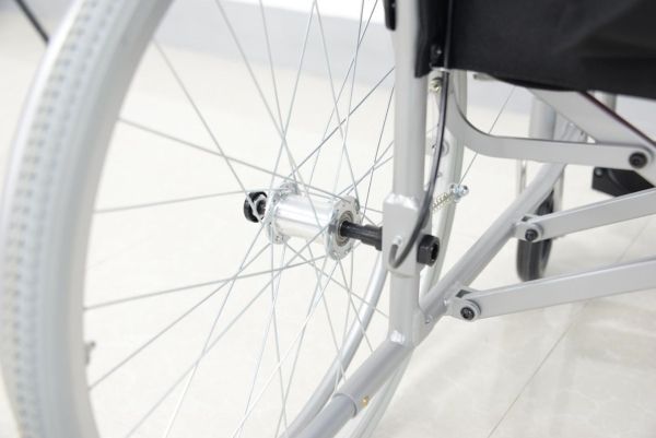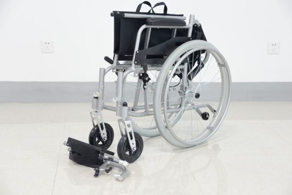 Der Rollstuhl lässt sich leicht zusammenklappen und wenn der Rollstuhl transportiert werden muss, können die Räder, Fußstützen und das Sitzkissen abgenommen werden.