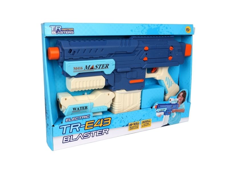 The electronic water gun surprises! Pull the trigger and water sprays up to 10 metres until the 500ml tank is empty. Size approx 43cm. Incl. water gun, 3.7V rechargeable battery, USB charging cable. 5+