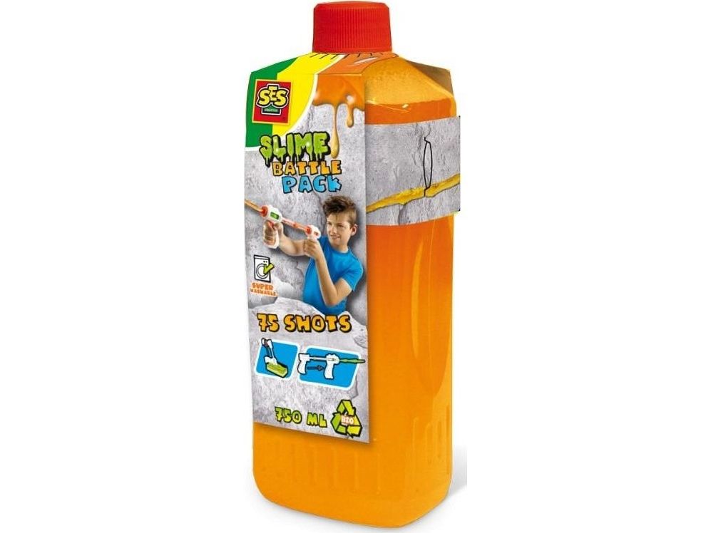 A bottle full of slippery orange slime. Can be used on its own or as a refill for the Slime battle blaster (02271). The slime is safe and easy to wash out of fabrics.SES Creative Slime battle refill - Neon orange 750ml. Type: Refill, Volume: 750 ml, Recommended age (min): 5 yr(s), Recommended age (max): 12 yr(s). Quantity per pack: 1 pc(s). Product colour: Orange